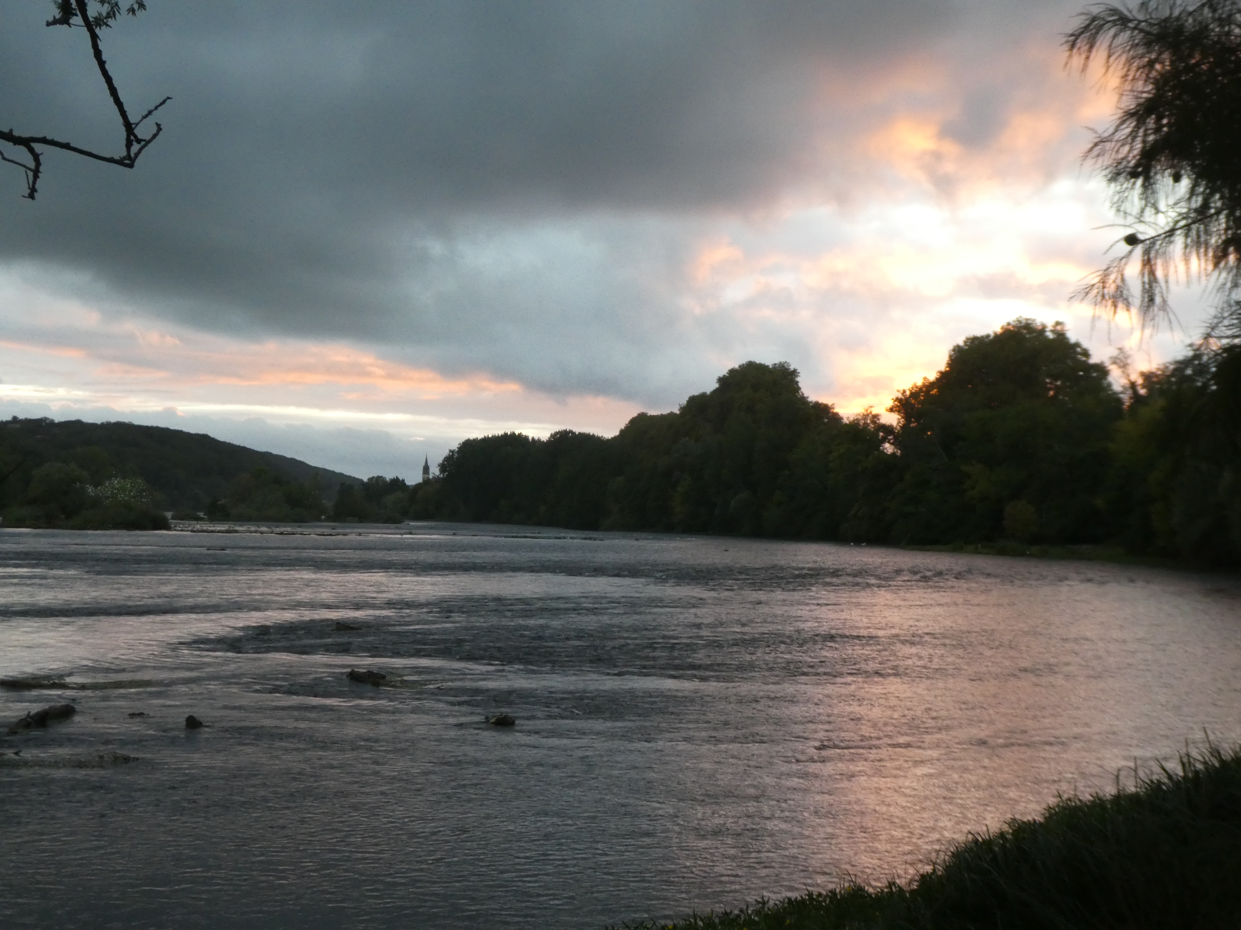As soon as it stopped raining, we whizzed off on our bikes downstream along the canal to Port De Couze and back along the other side of the river to get some exercise. It was lovely having supper in the warmth by the river as the sun went down listening to the wildlife.