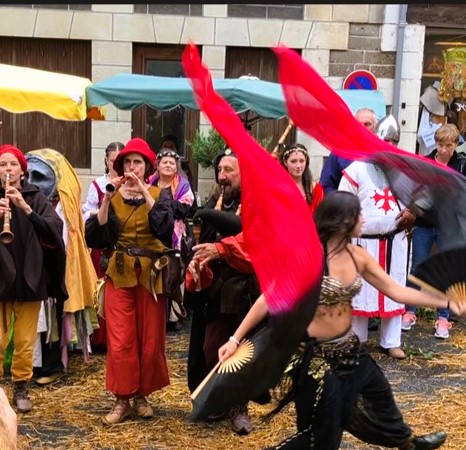 We had coffee with our neighbours from the campsite surrounded by young people rather self-conscious in their medieval costumes. We were impressed by how many people there were in well-made and authentic medieval costumes.
