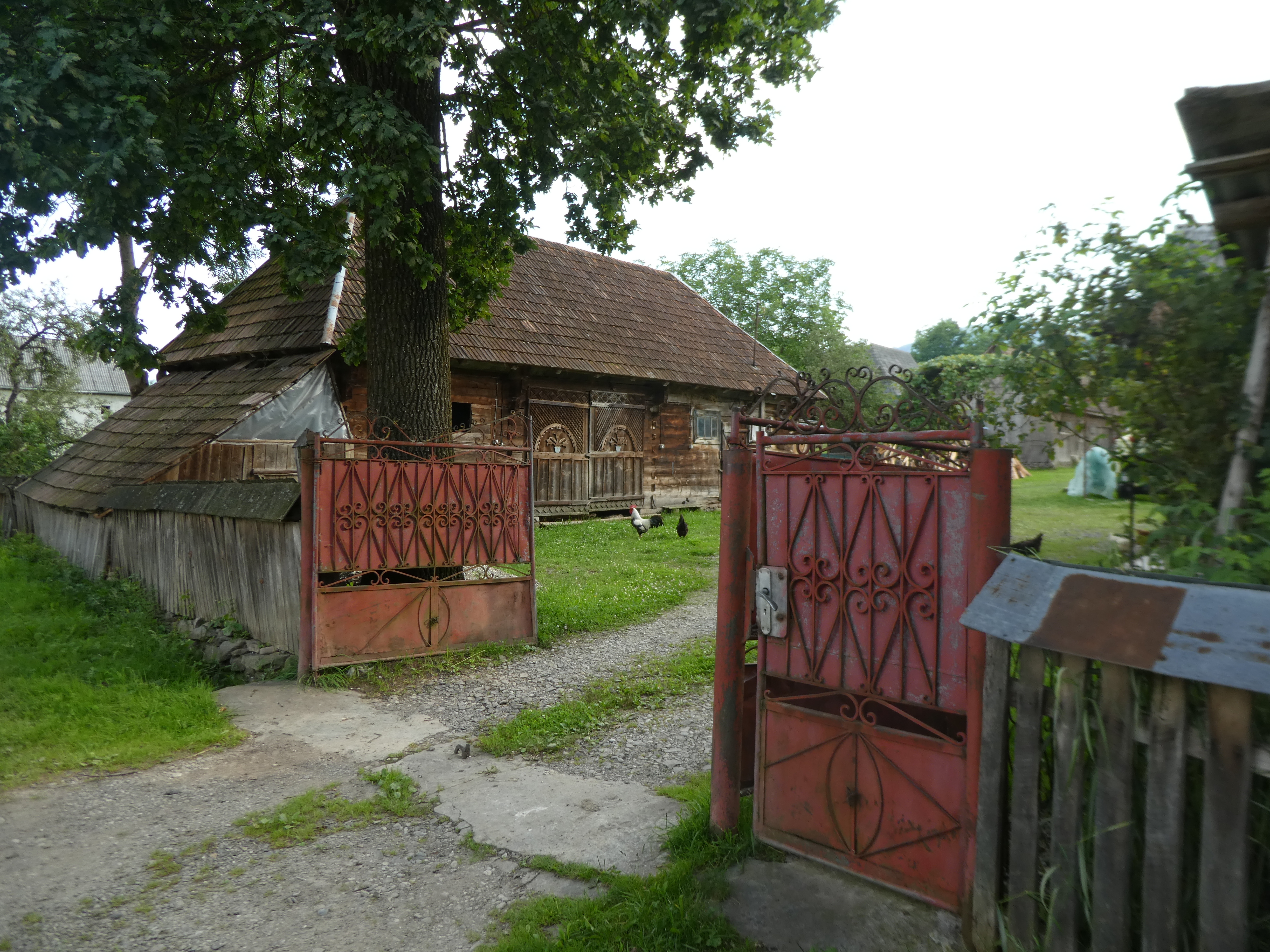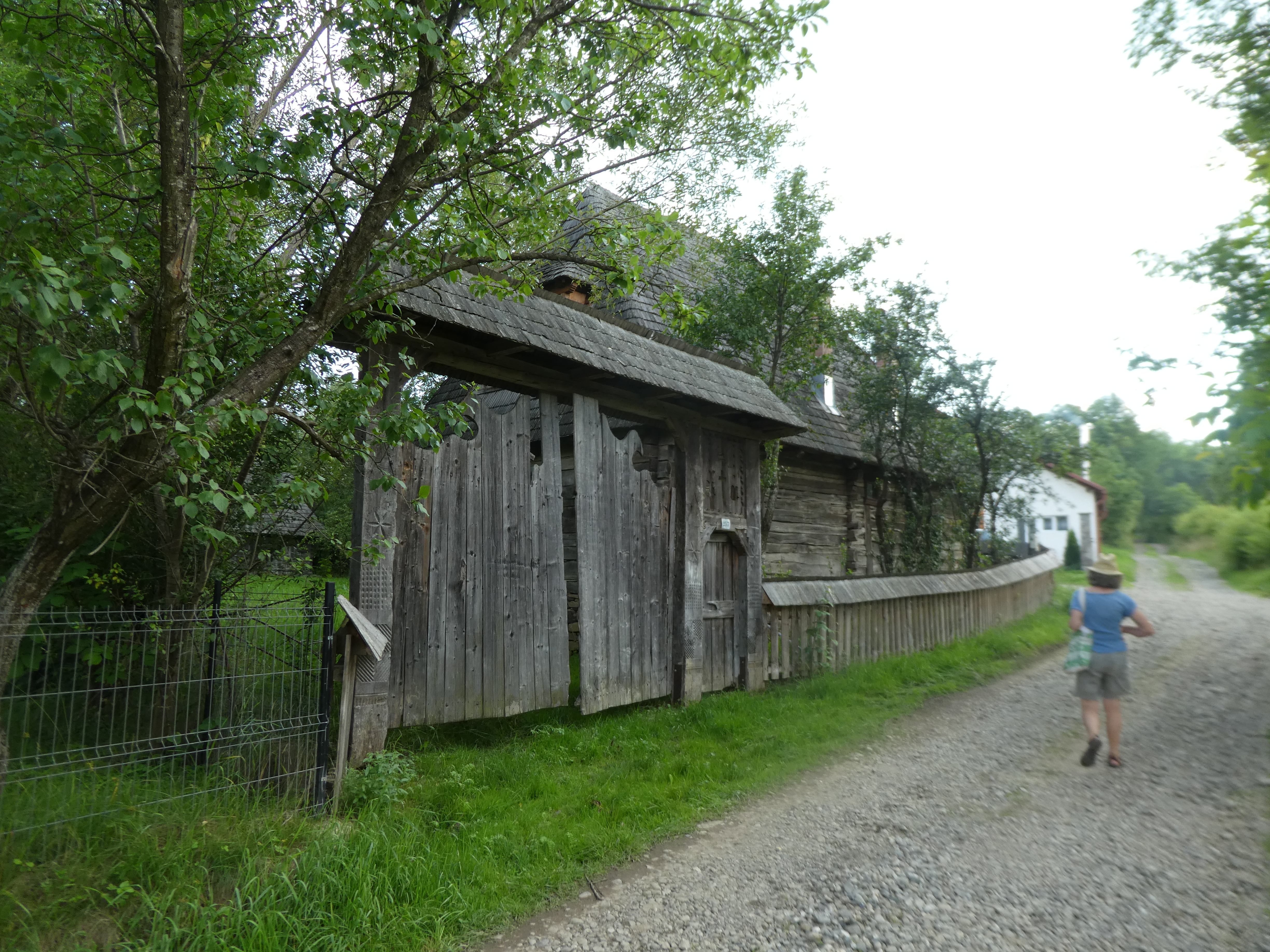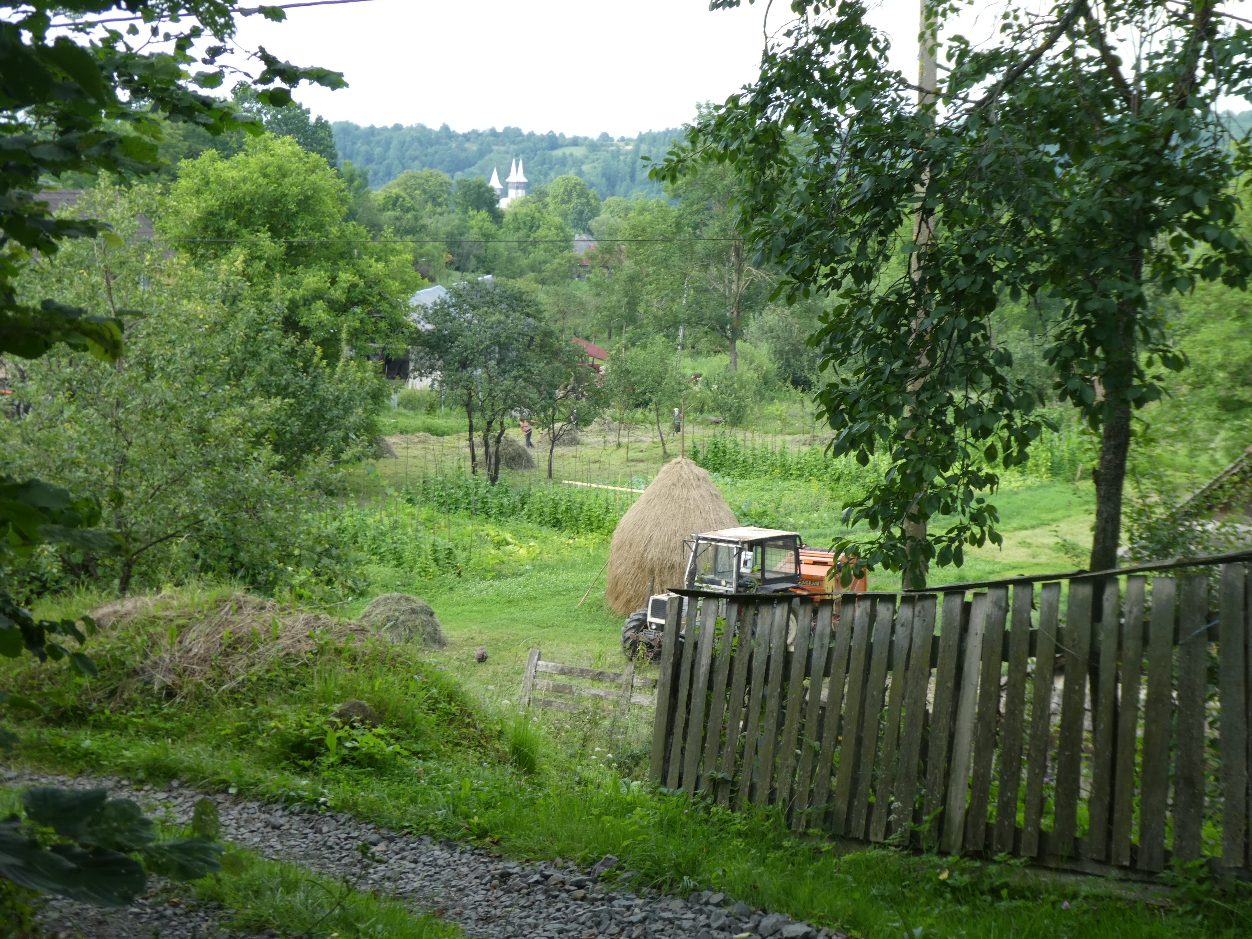 The ornate wooden gateways to the houses and some of the houses were fascinating. Every plot of land had a hay rick and there was grass being cut and stooked all around.