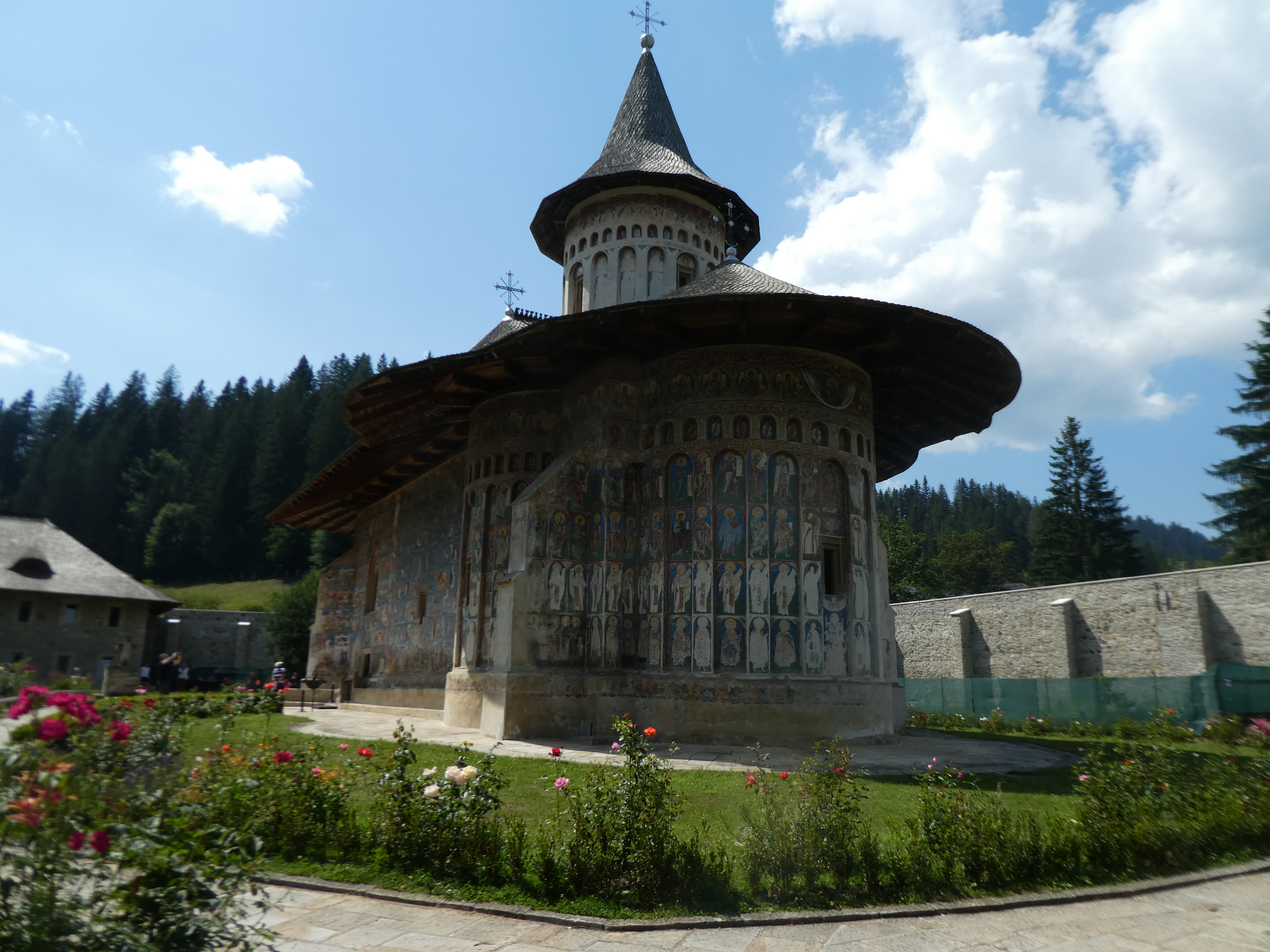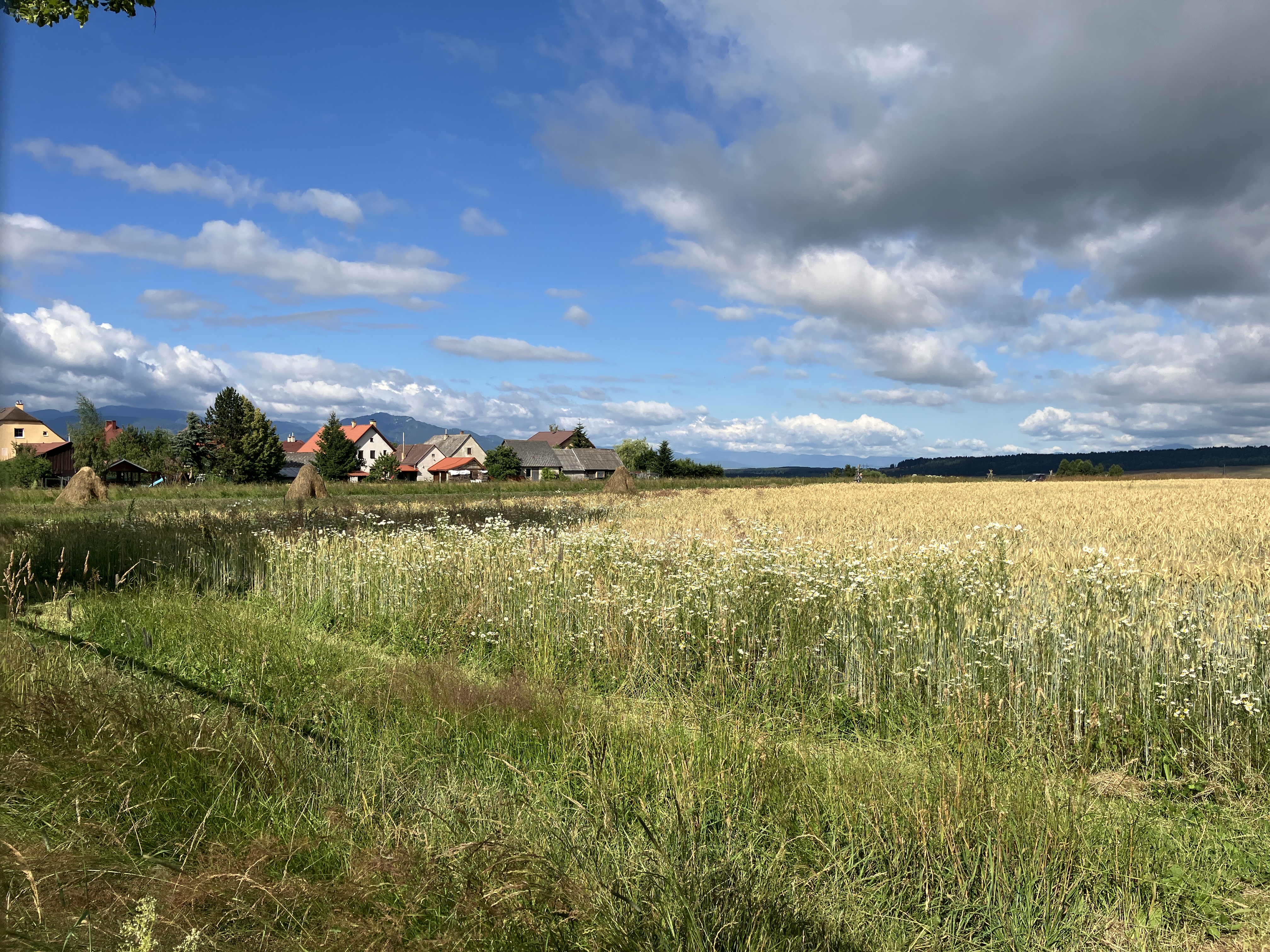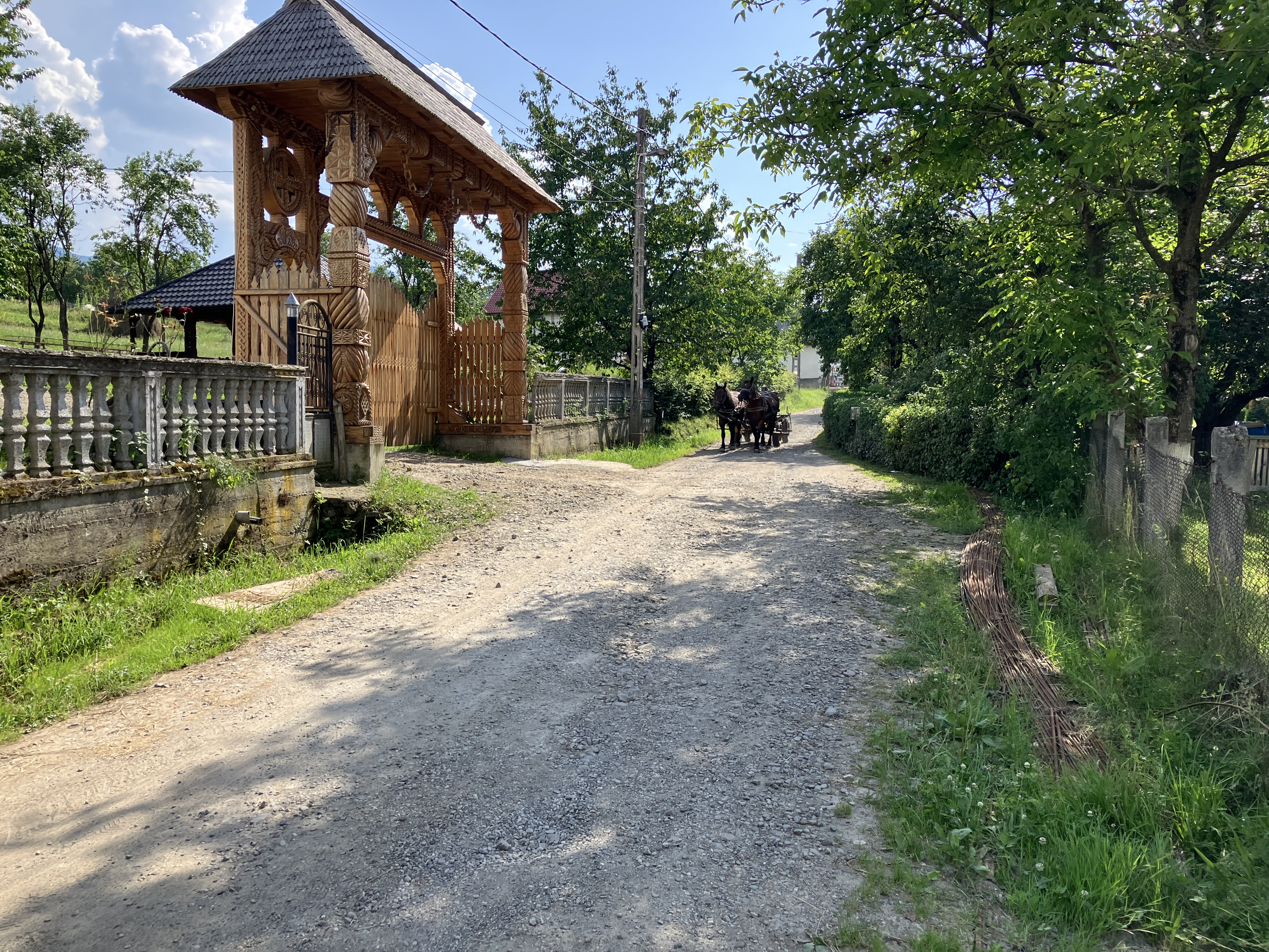The ornate wooden gateways to the houses and some of the houses were fascinating. Every plot of land had a hay rick and there was grass being cut and stooked all around.