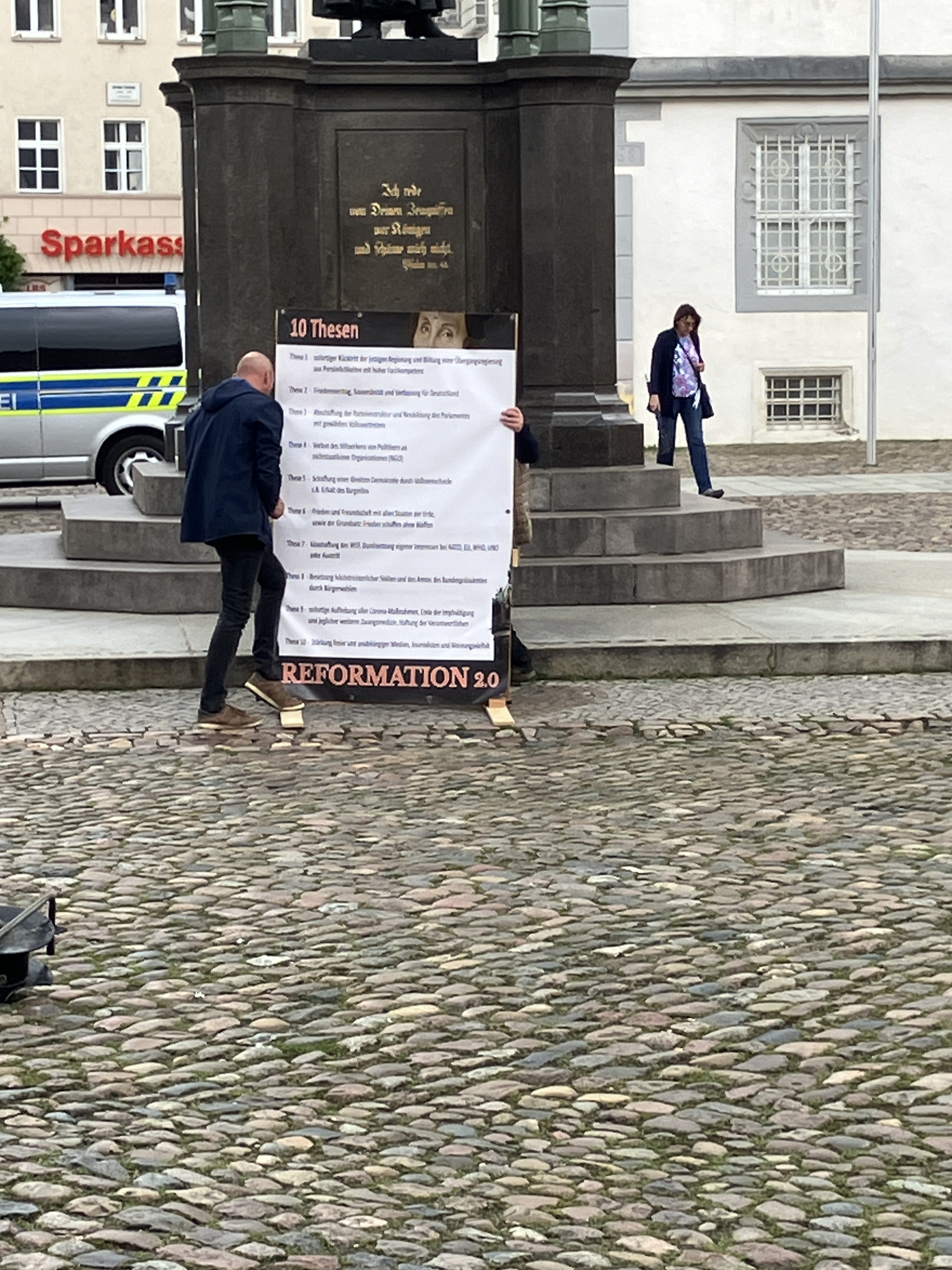 As we were leaving a demonstration was taking place in the square and a new set of theses were being displayed by protesters.