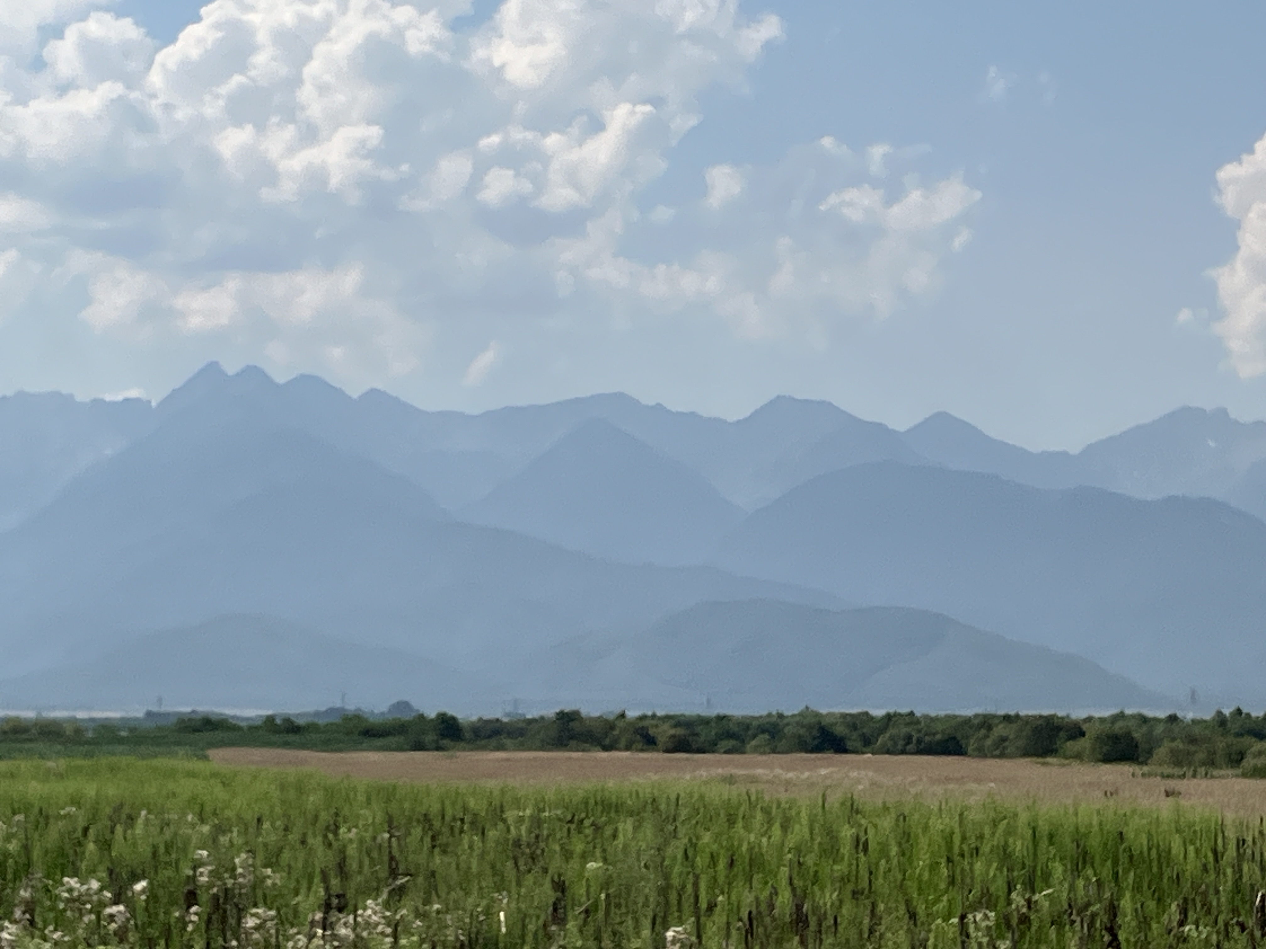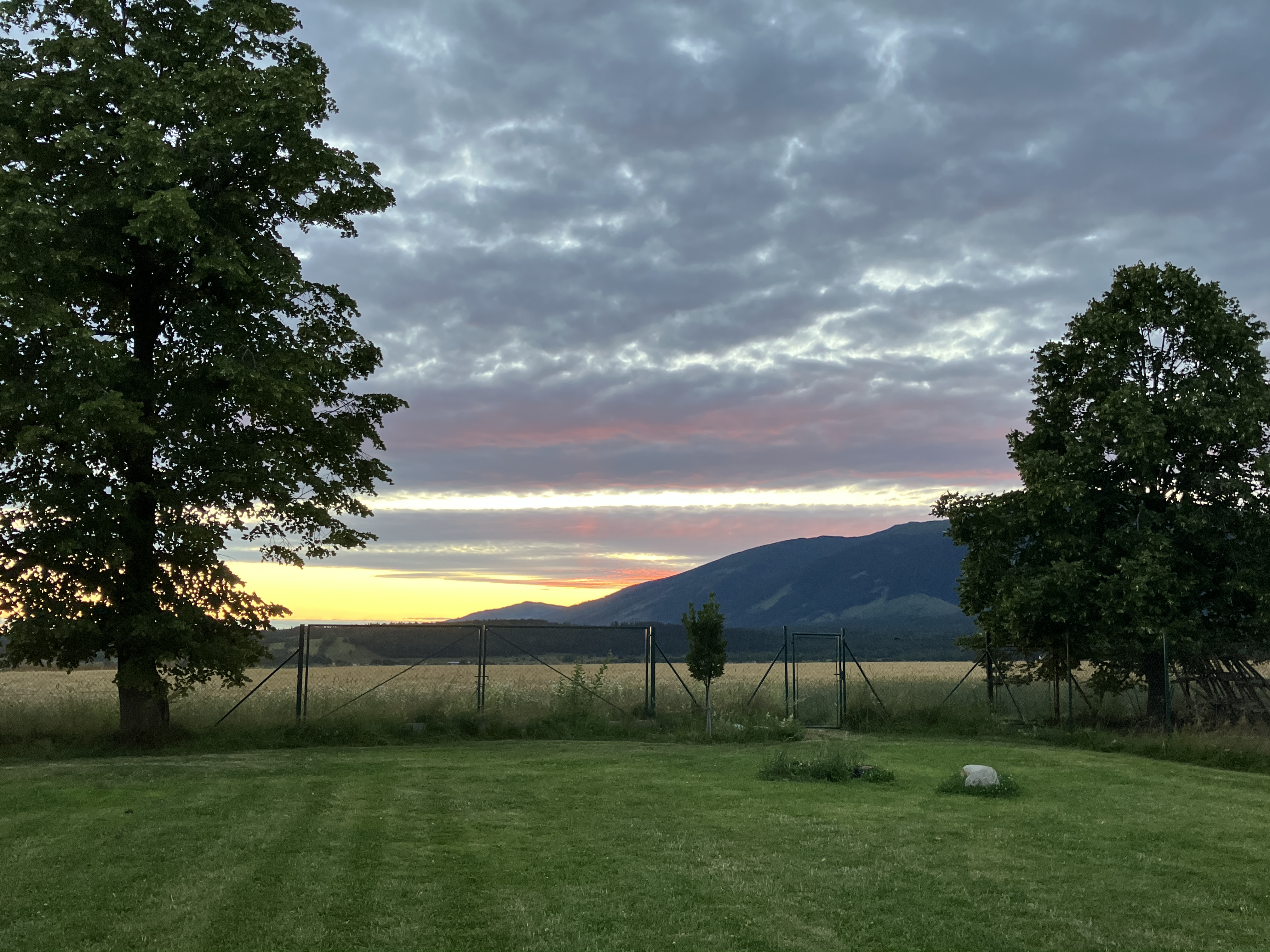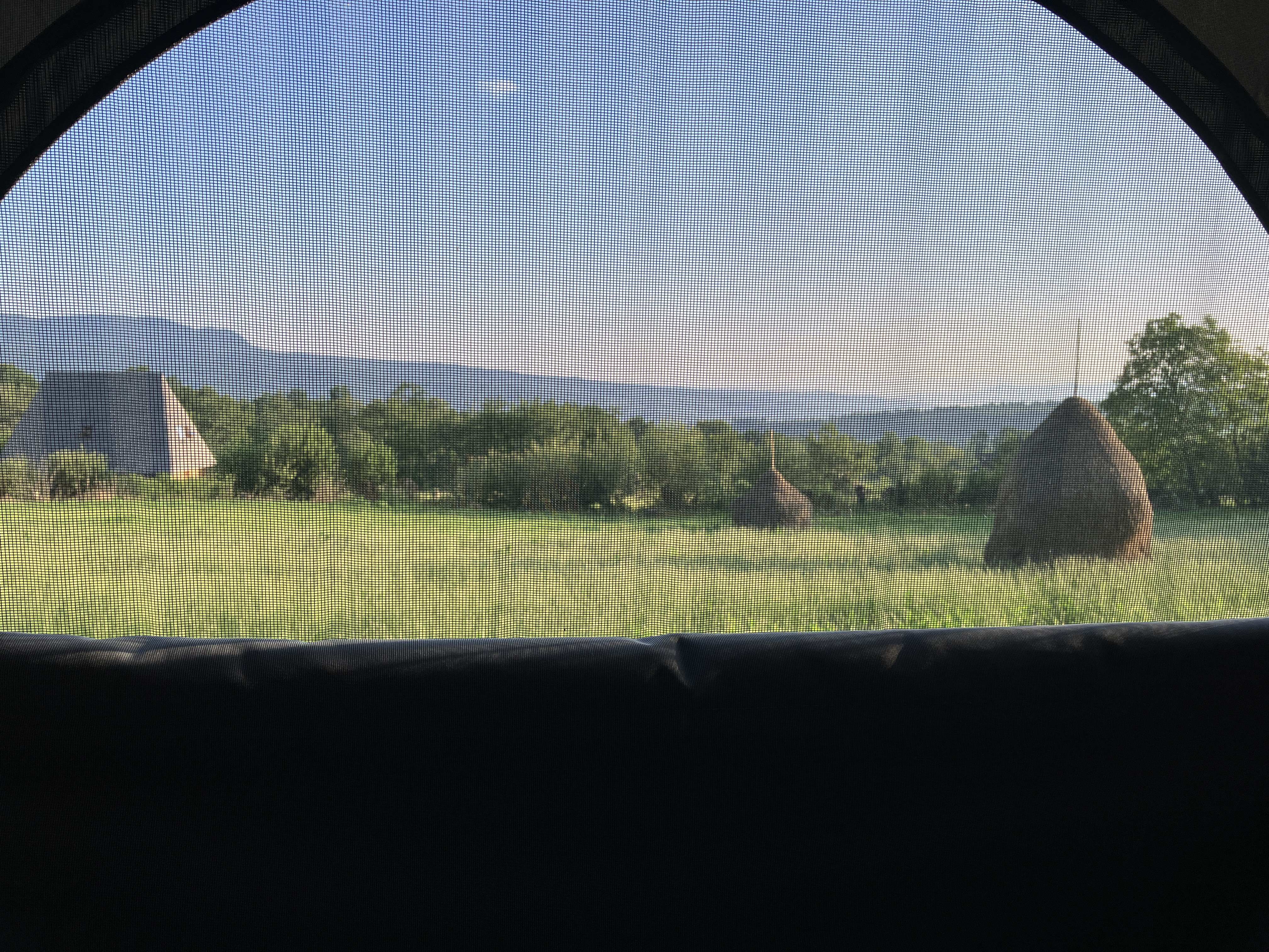 By eight o clock the campsite was full and we ate overlooking the mountains with the hay being cut around us in the cool of the evening. We have travelled 1932 miles since leaving home