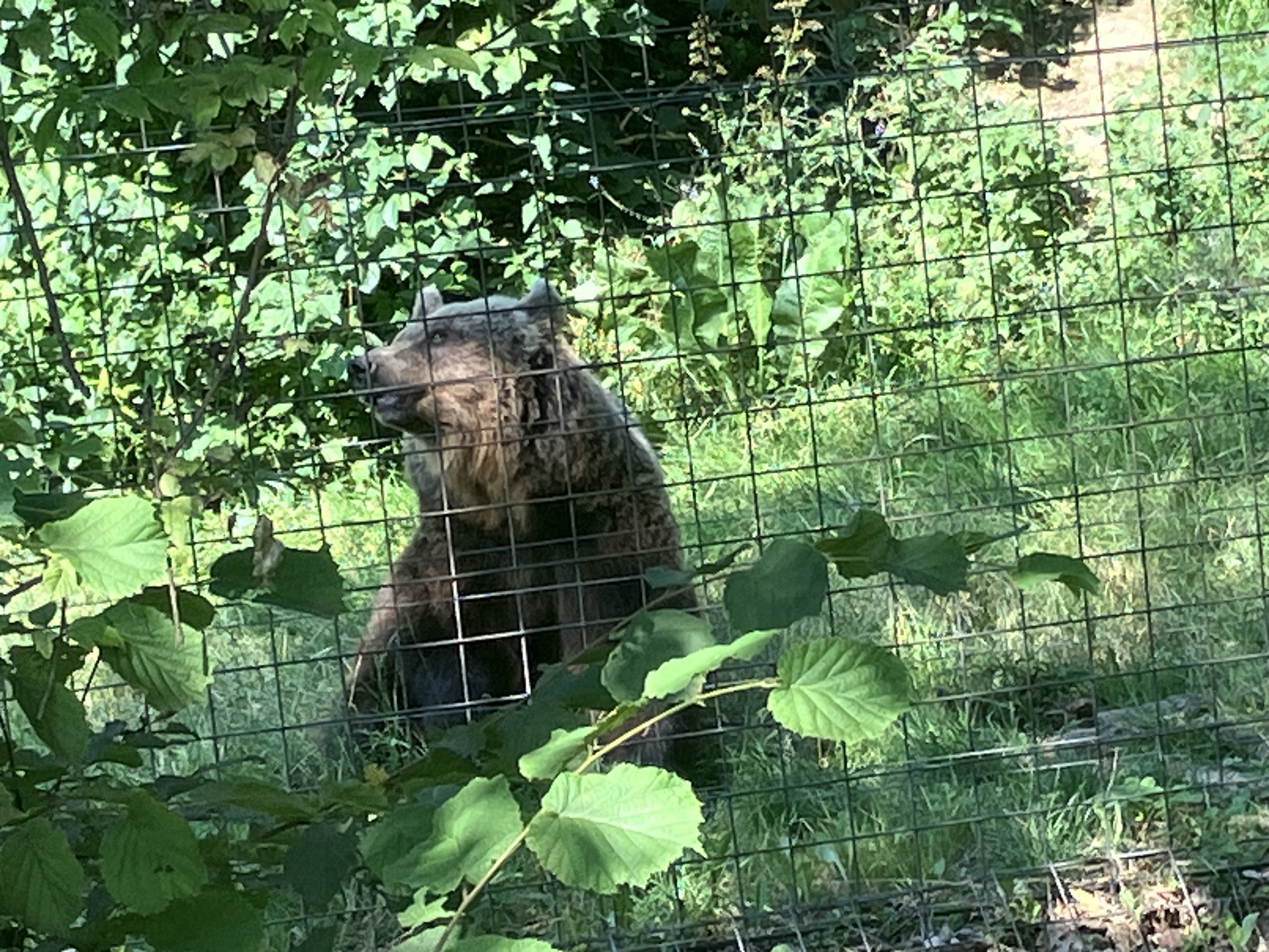 We walked up the hill to where the orphan bears were kept. They were of all sizes and very curious and impatient for their food.