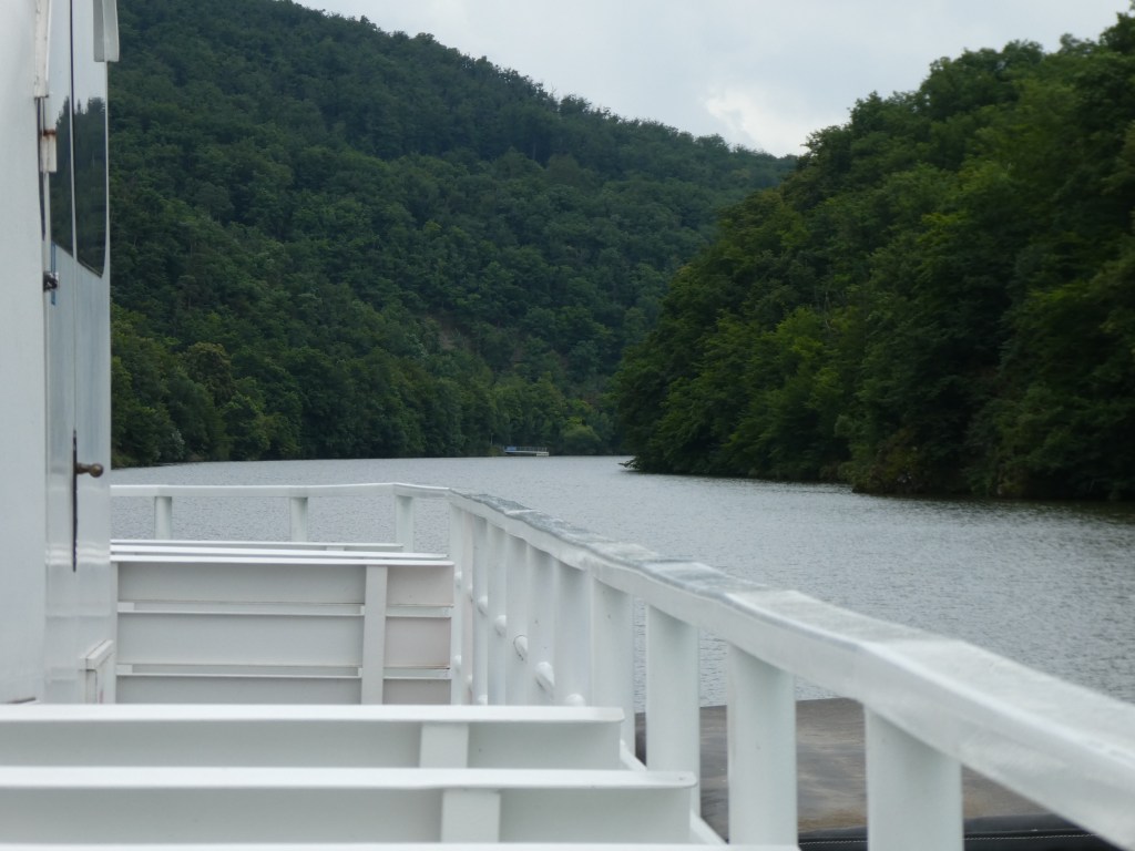 We caught the 10.30. ferry which had cycle racks for the bikes with a crowd of other tourists mainly families from the camp site. It was lovely going through the narrow part of the lake seeing small deer at the water’s edge. Most people got off after a couple of stops to see the local Castle. We carried on to the stop Cyklisticka from where we cycled along the side of the lake mainly on a cycle track, which was lovely.