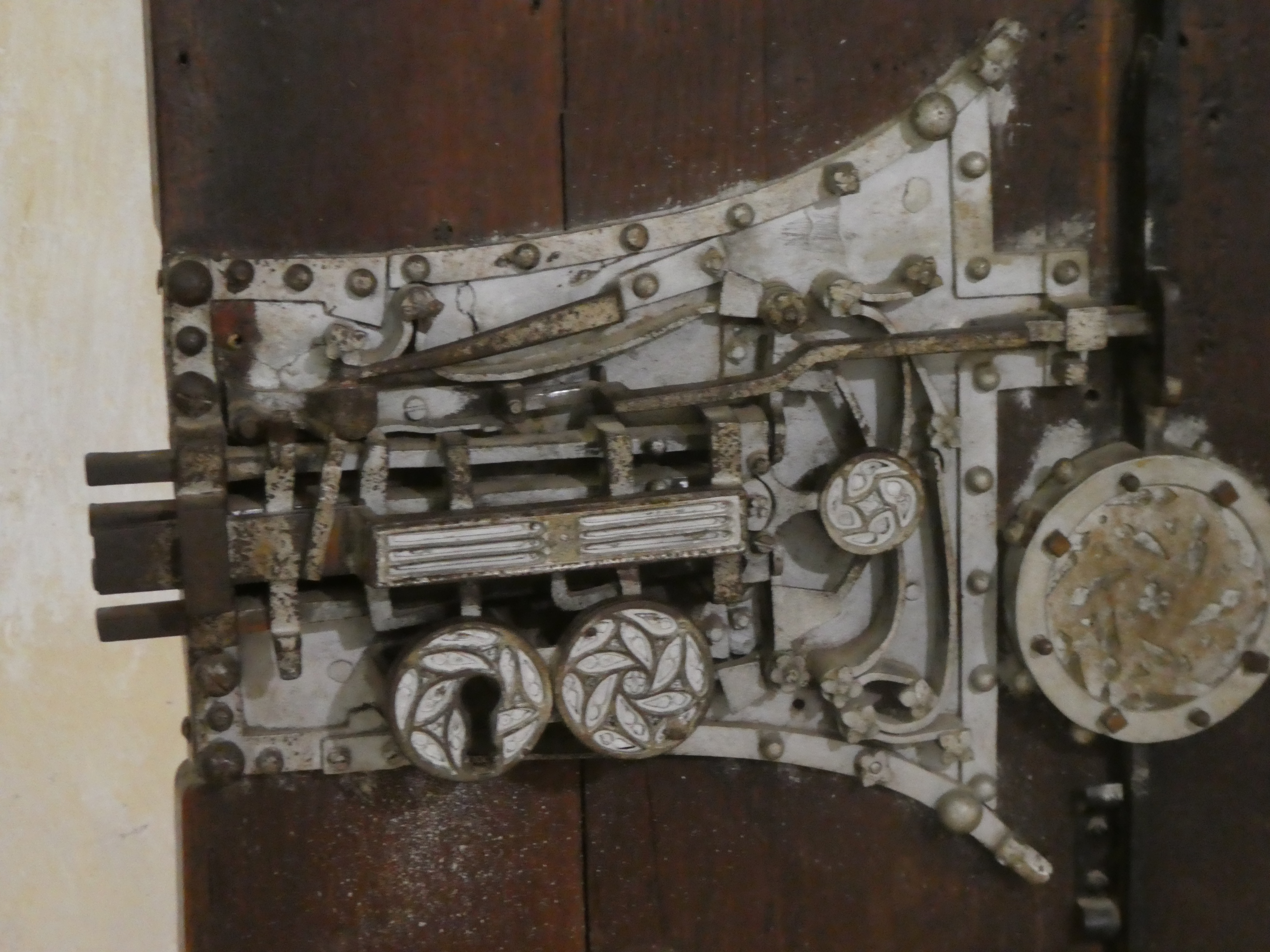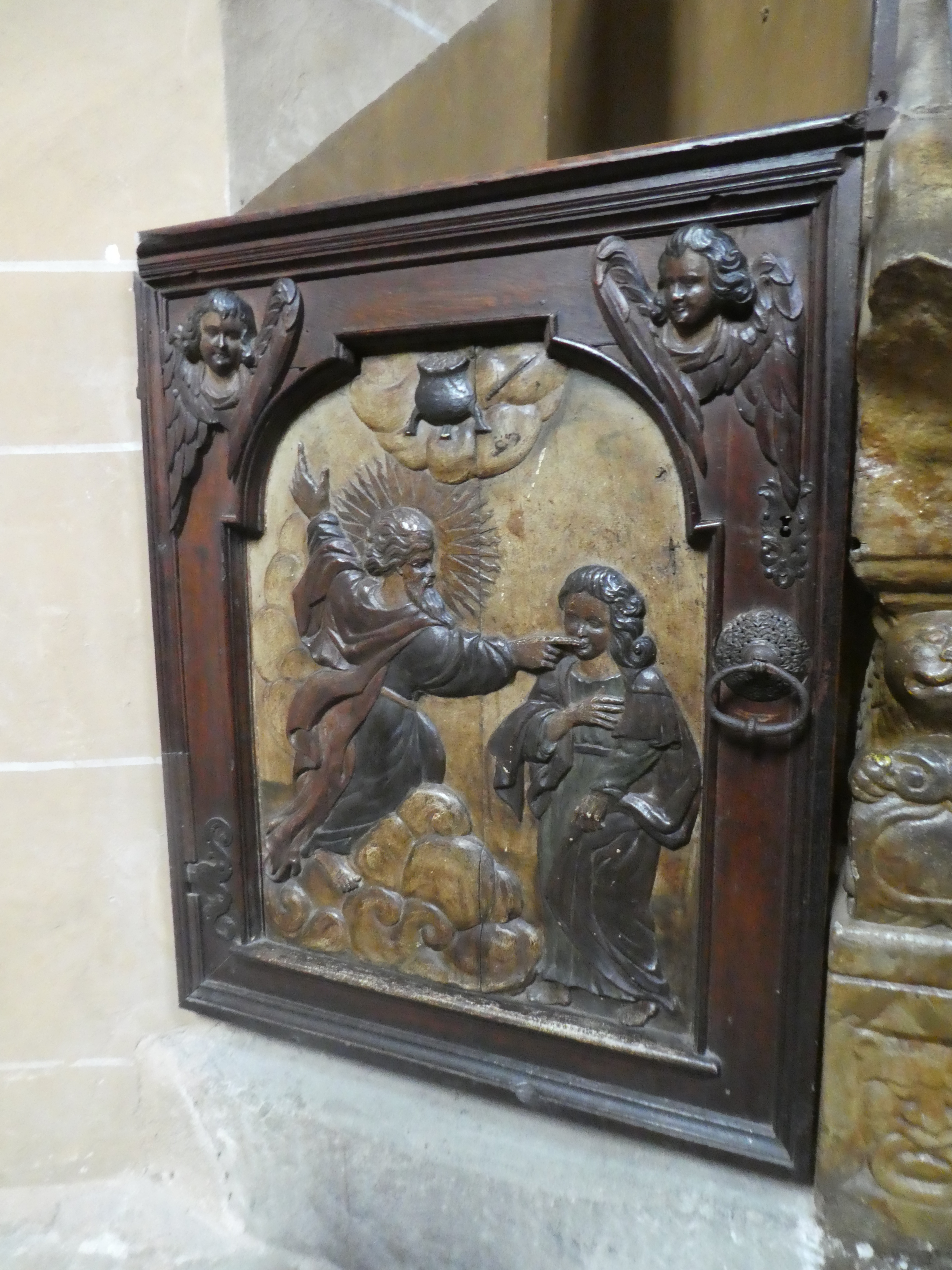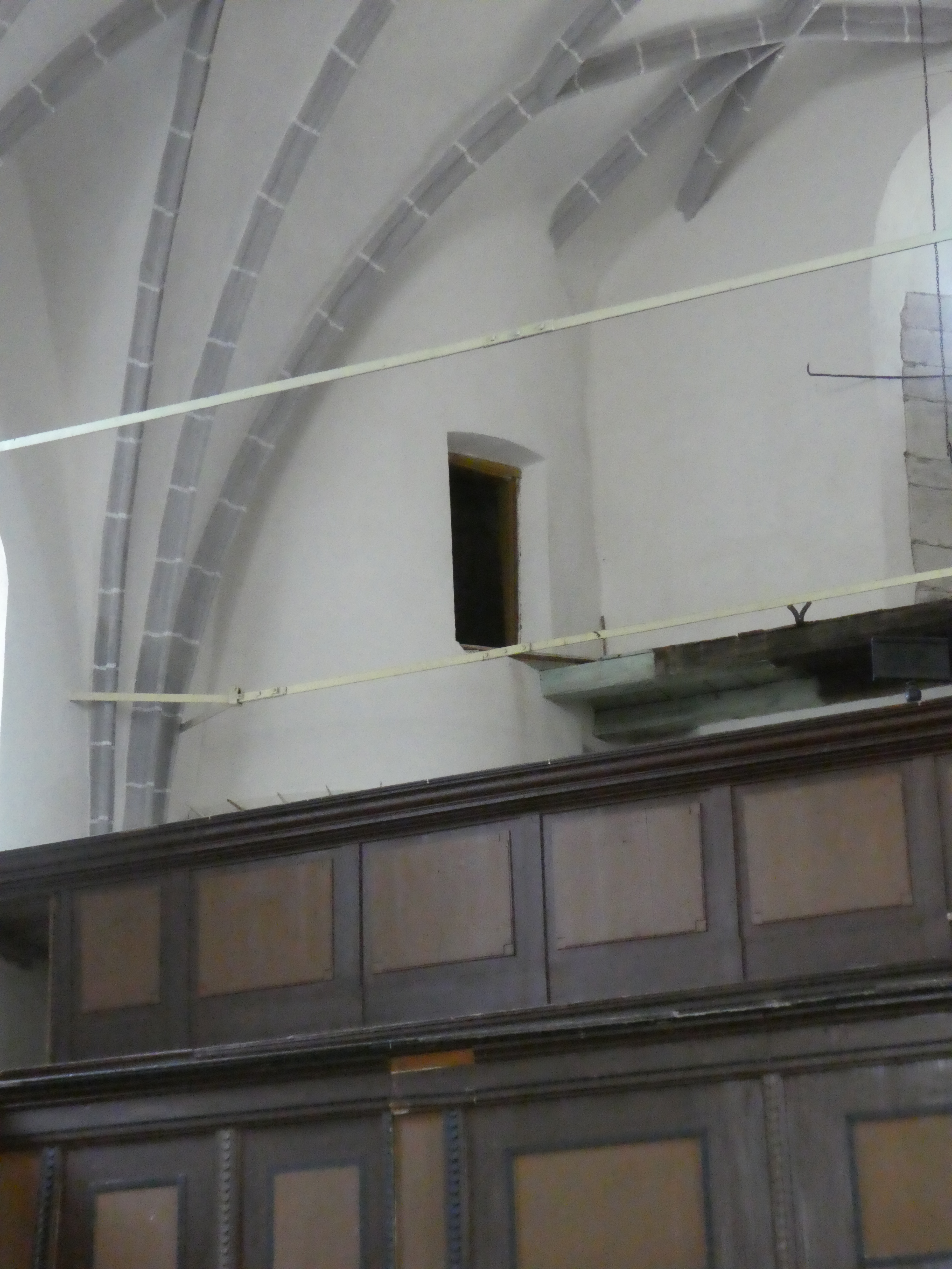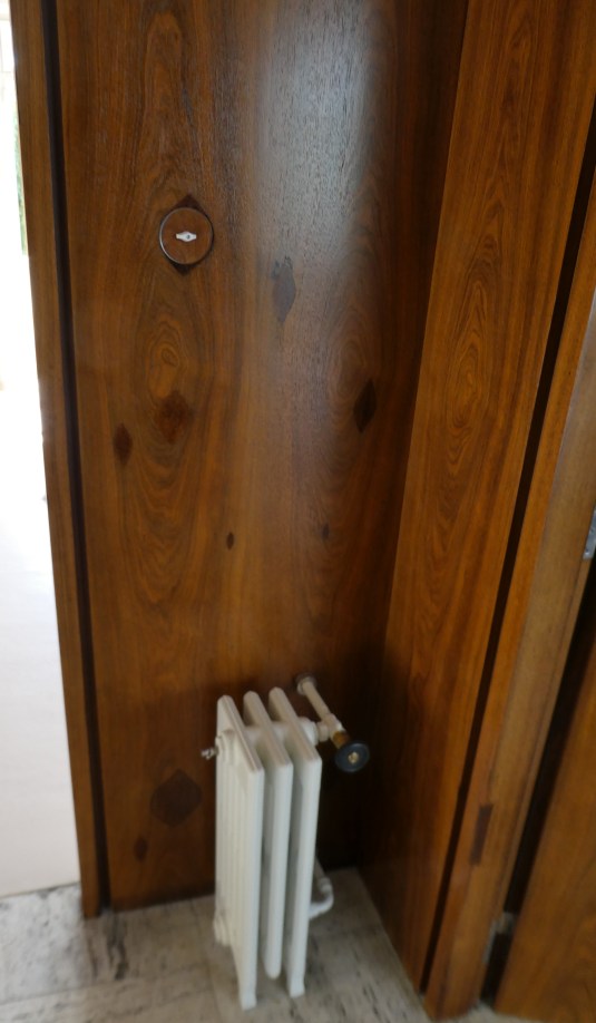 We were told that when the German Gestapo occupied the building during the second world war important features of the building were screened off to prevent damage. When the Russians came in afterwards the use of the house by Russian Cavalry led to windows and doors being damaged. The patching up particularly of the woodwork is evident.