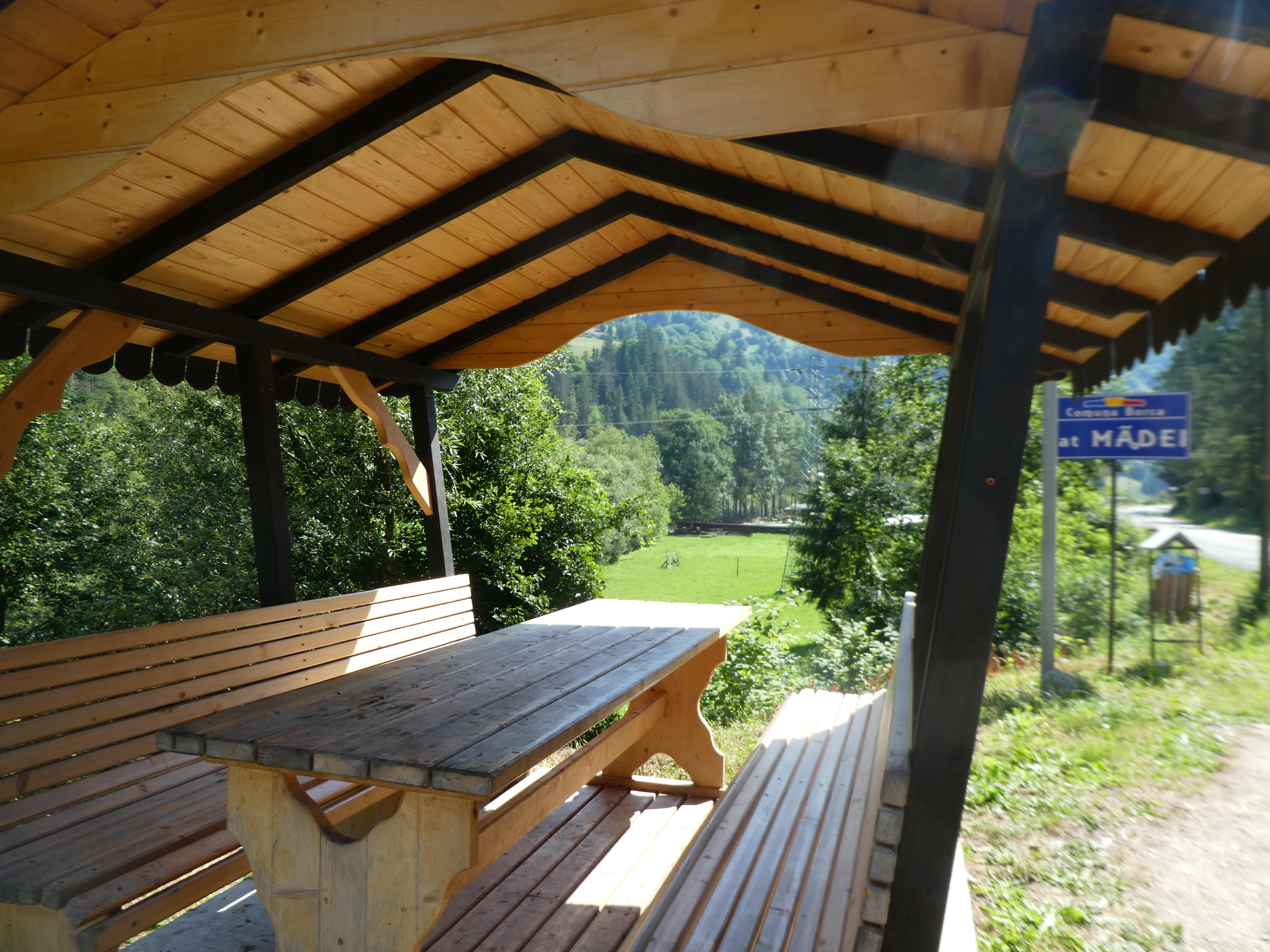 We then travelled north Deva, Brad, Adulat then over the hills at Vadu Motilor. Just over the pass we stopped at a roadside pagoda and had lunch with another dog!