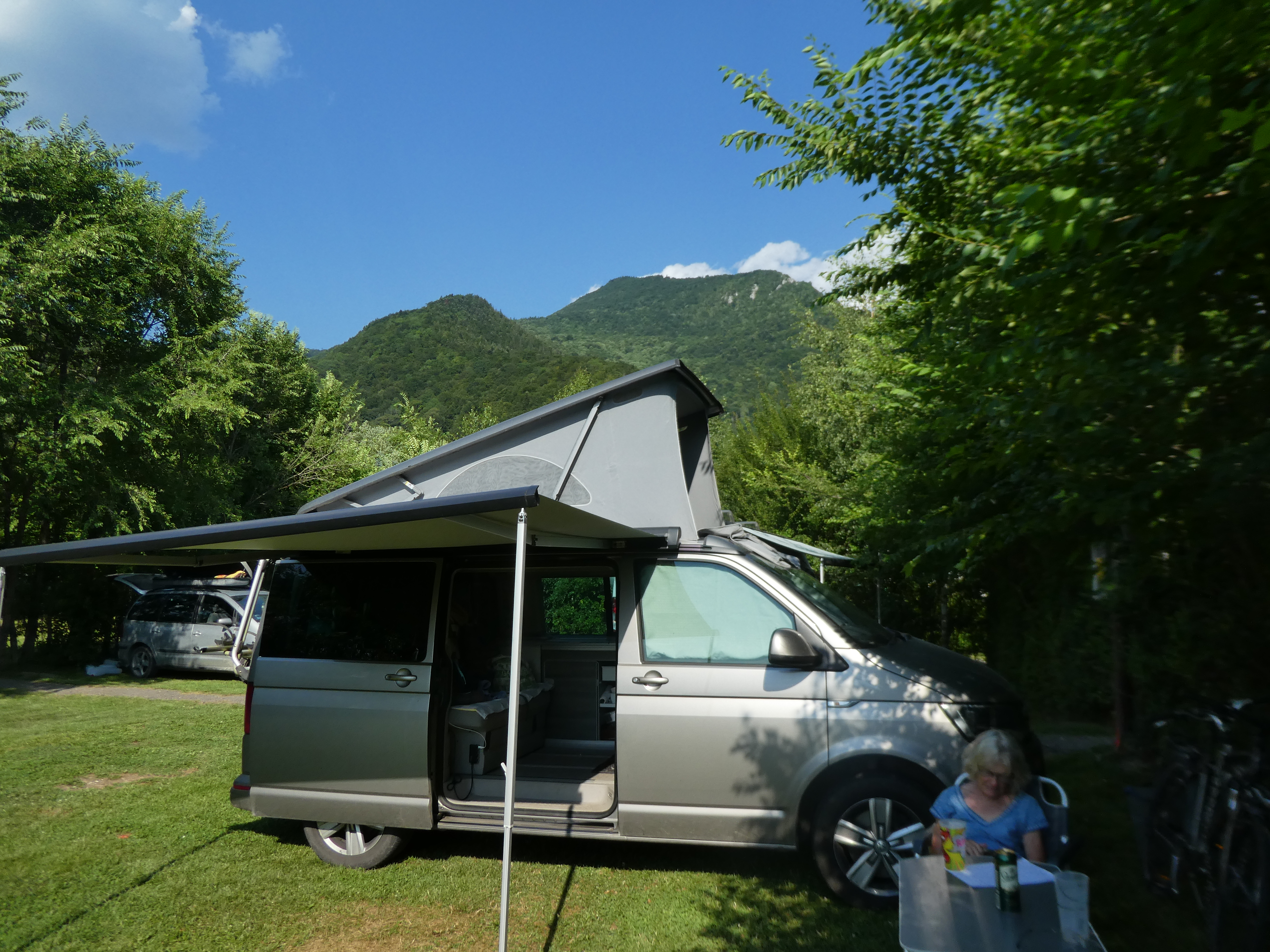 It was busy with children and campers. We pitch in the warm sunshine next to an English couple, retired teachers in a camper van, who had been touring Europe for several weeks.
