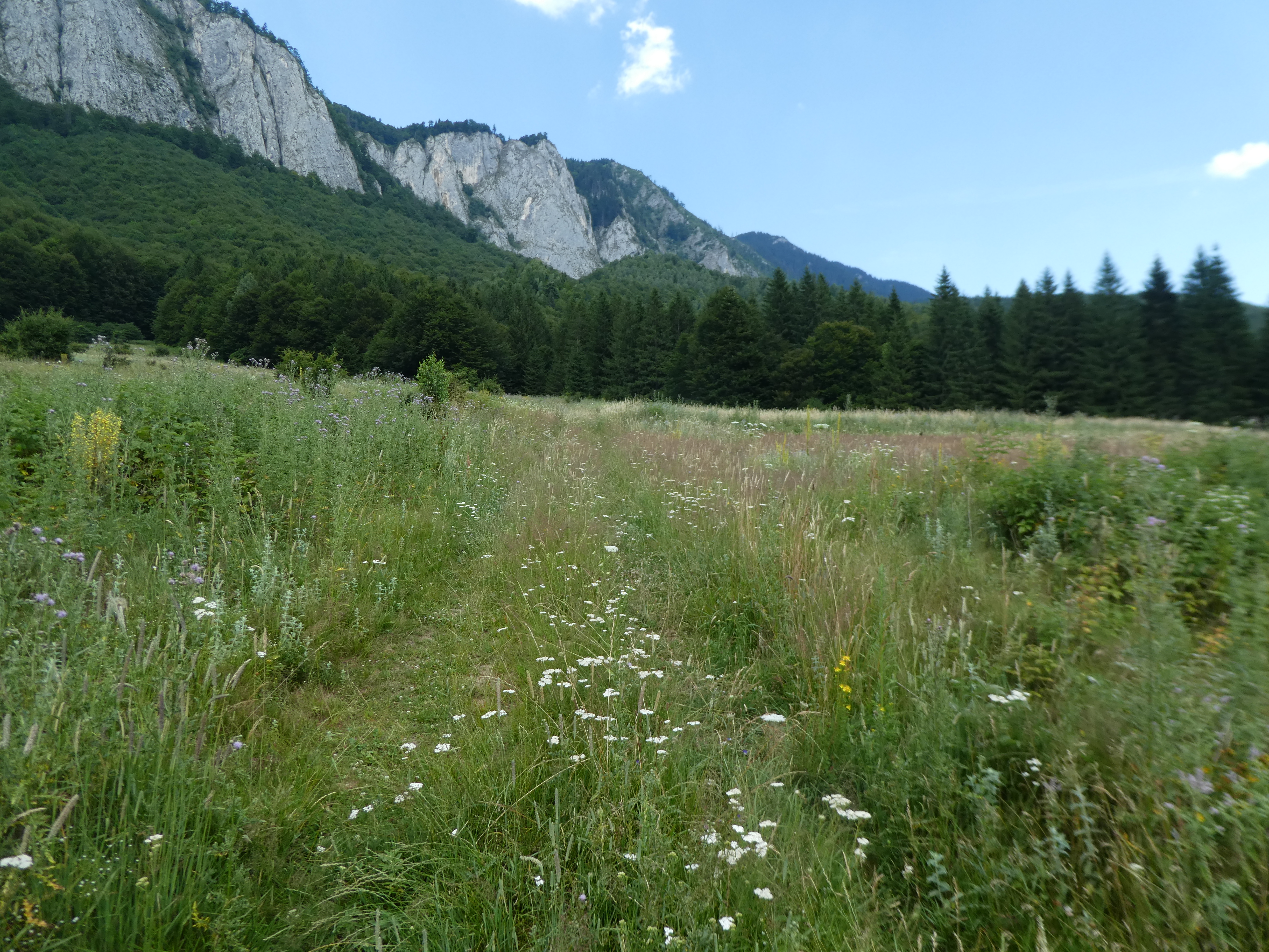 We walked out across a beautiful meadow and started climbing through a lovely wood toward the escarpment. The images from this morning and the recent bear attack had sapped our confidence.