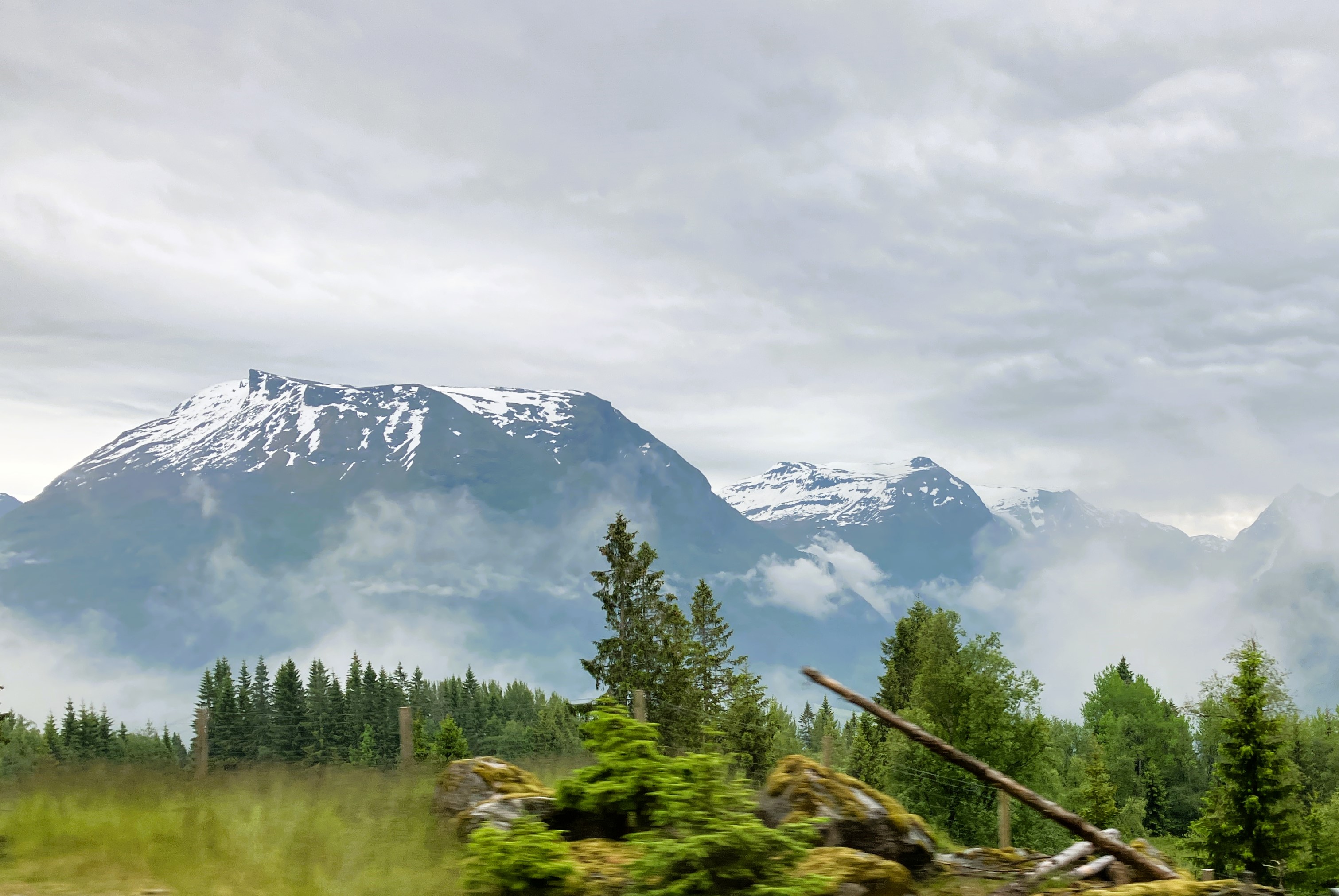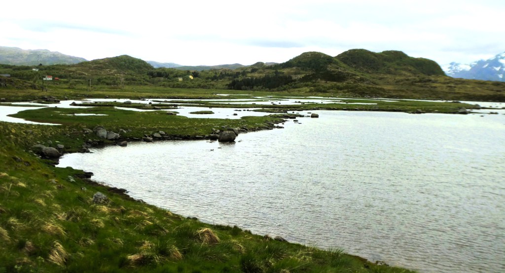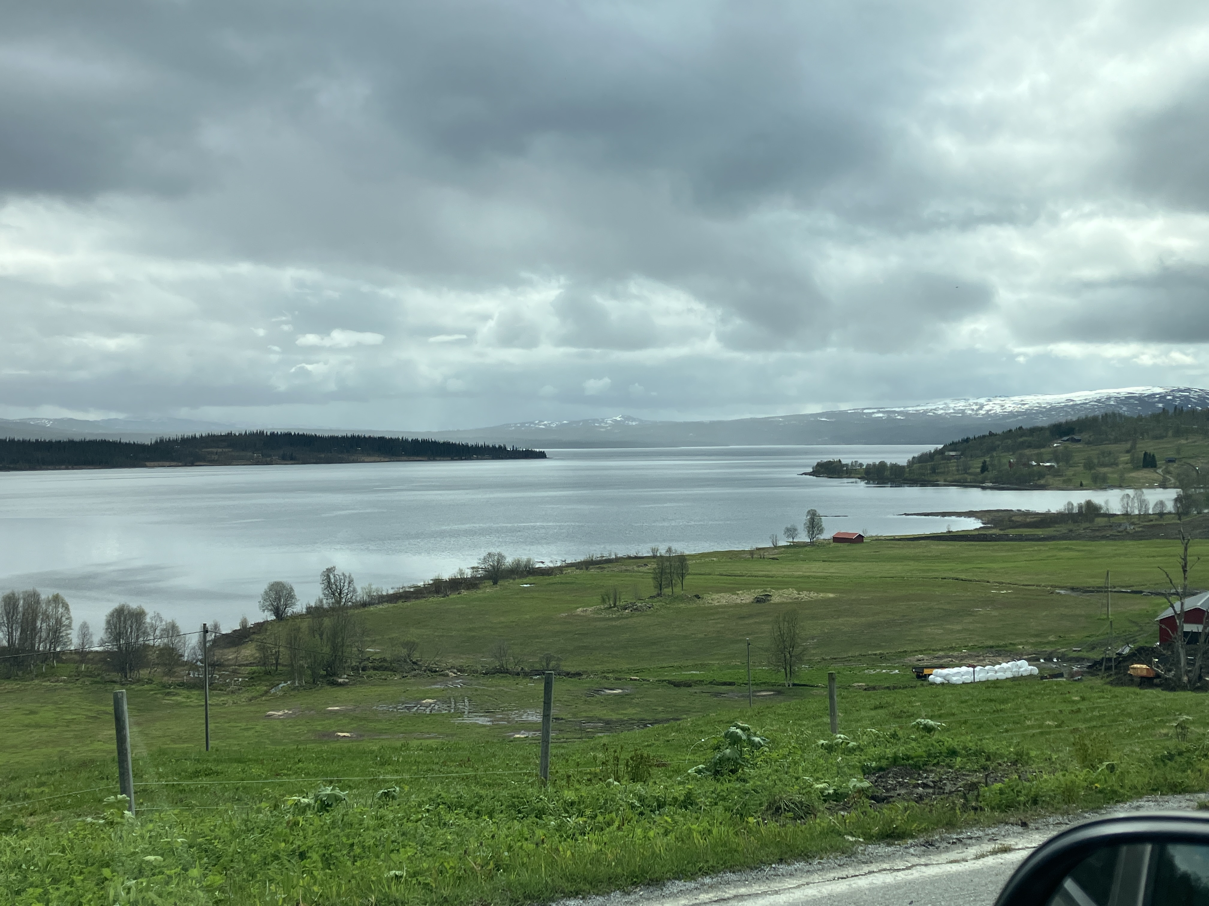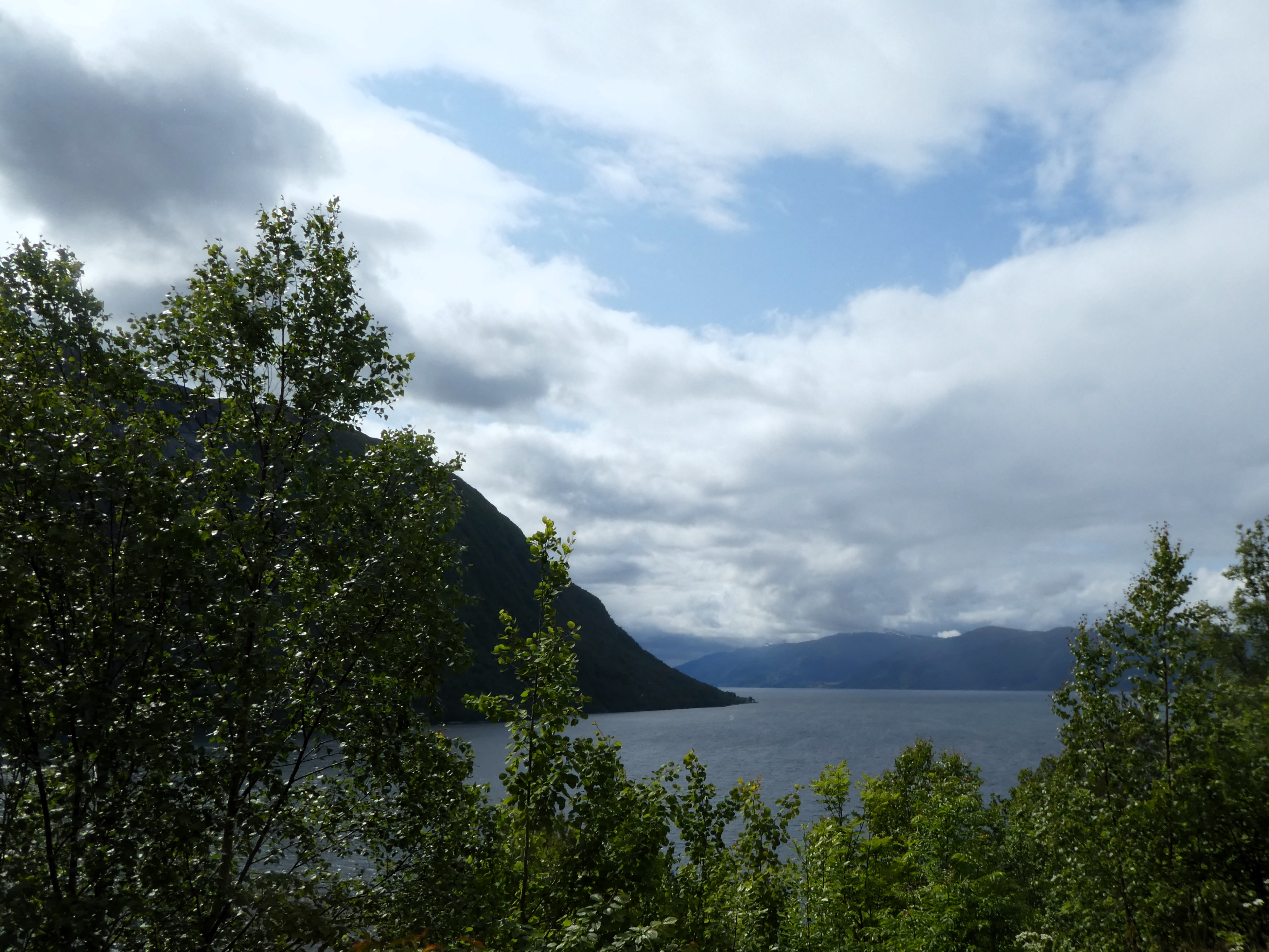 Once past Amot the scenery became less dramatic but still beautiful. We were travelling inland away from the major Fjord area and the weather was improving.