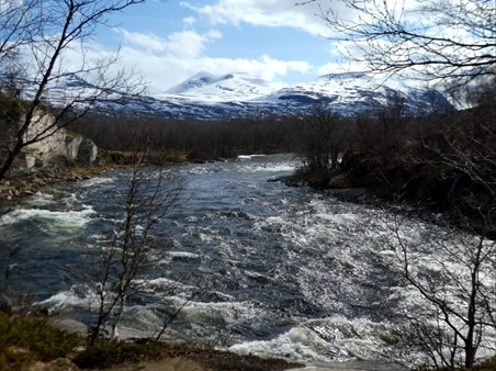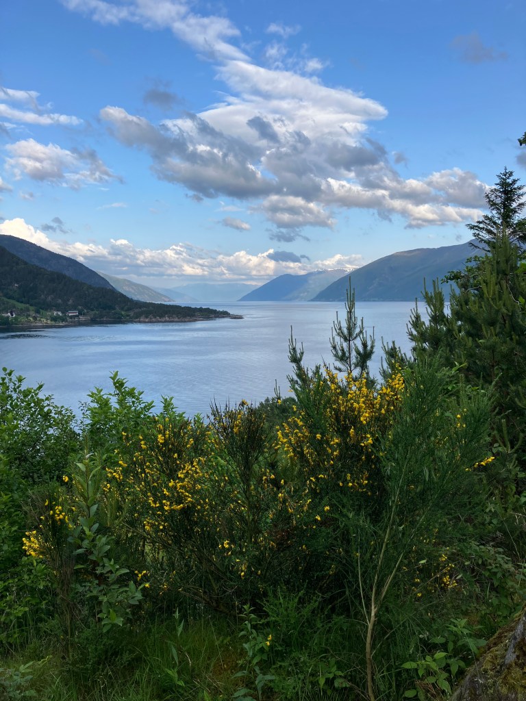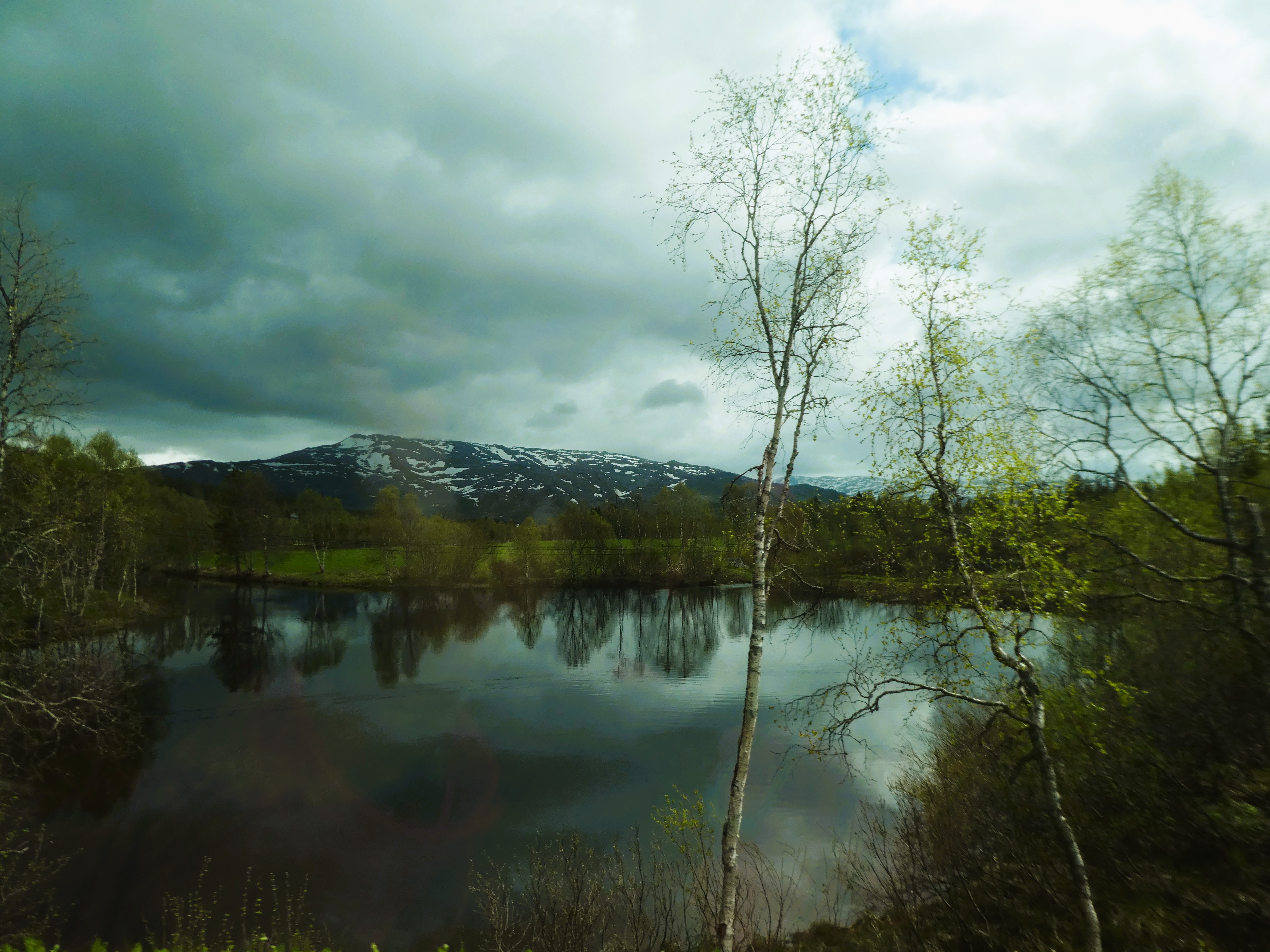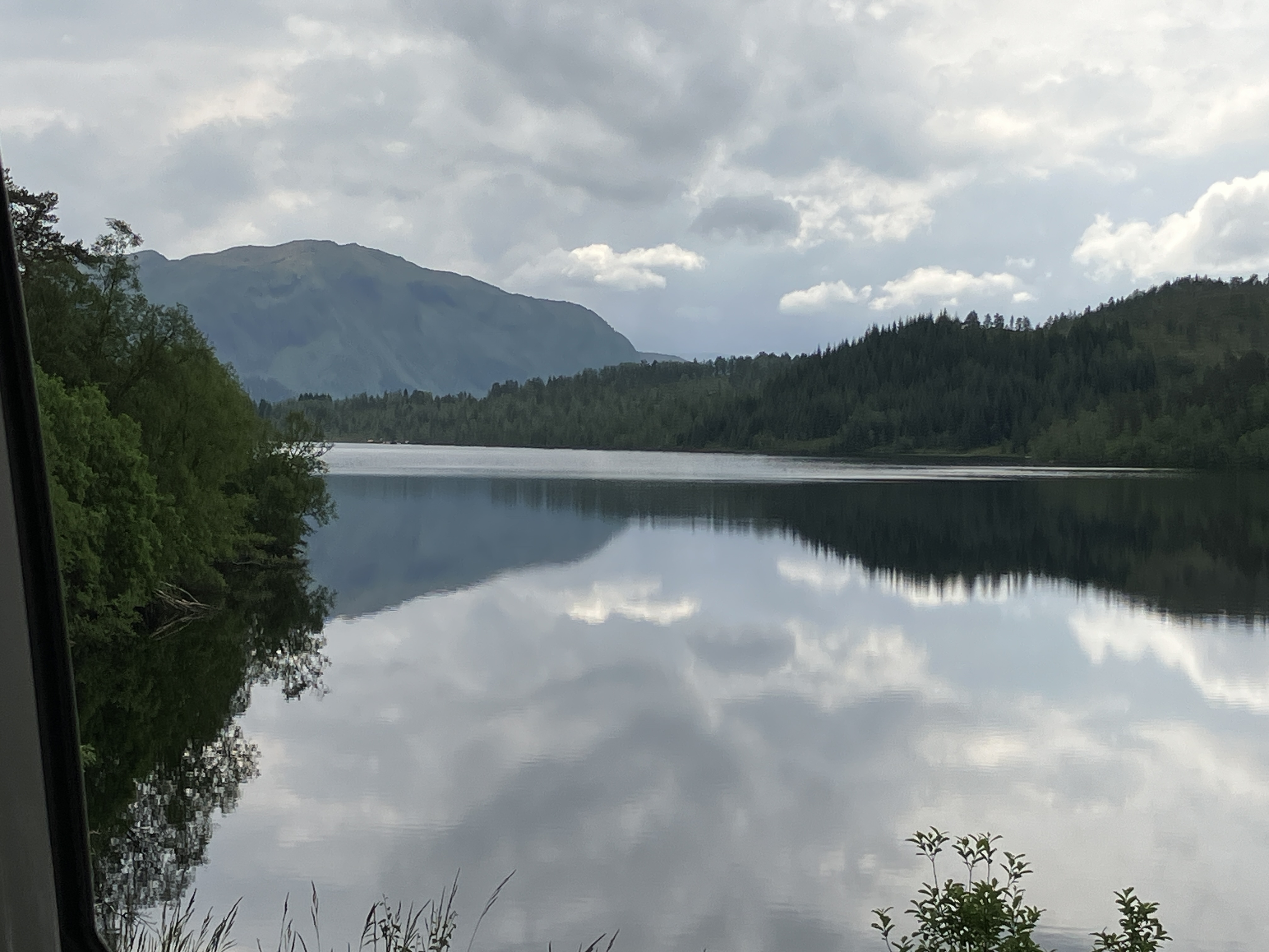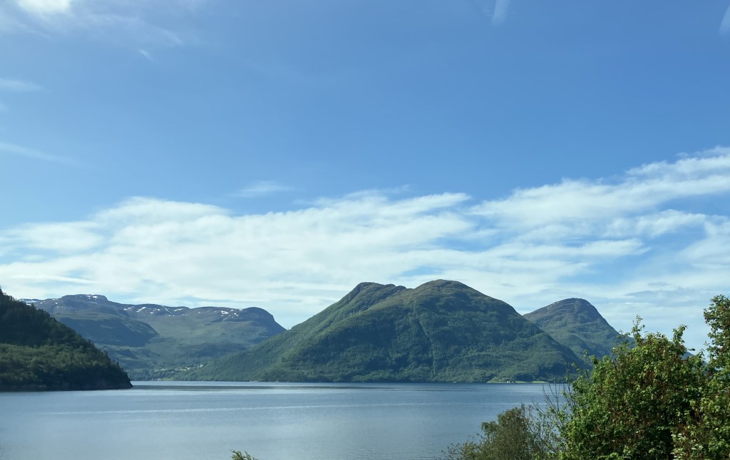 Once past Amot the scenery became less dramatic but still beautiful. We were travelling inland away from the major Fjord area and the weather was improving.