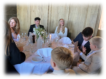 The Wedding Banquet began and under James’s direction speeches were made. Anna’s father Yarn, her sister Marie, Graham, Finn, Olly, the best men, Peter and Chris, Agnetta and Halvard. All were good, but Finn’s really stood out. The emphasis being on the love of Martin and Anna