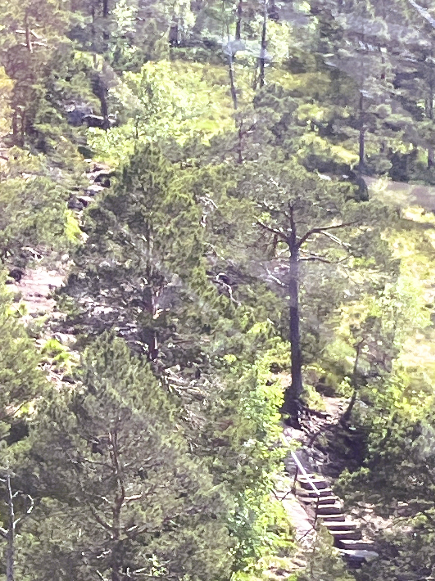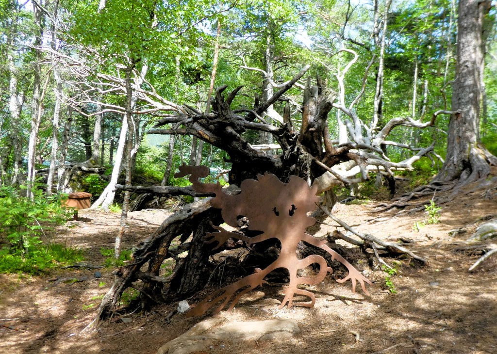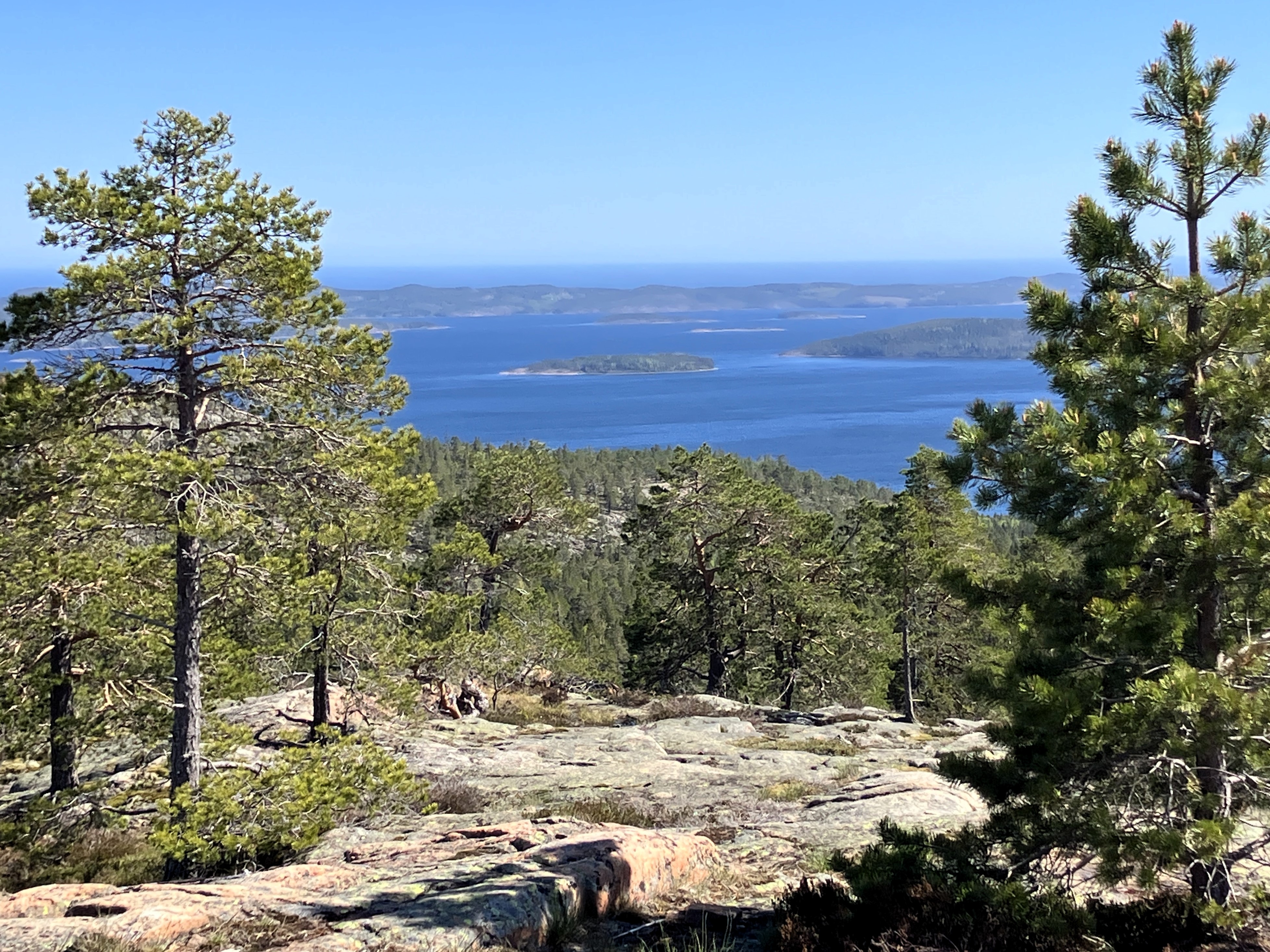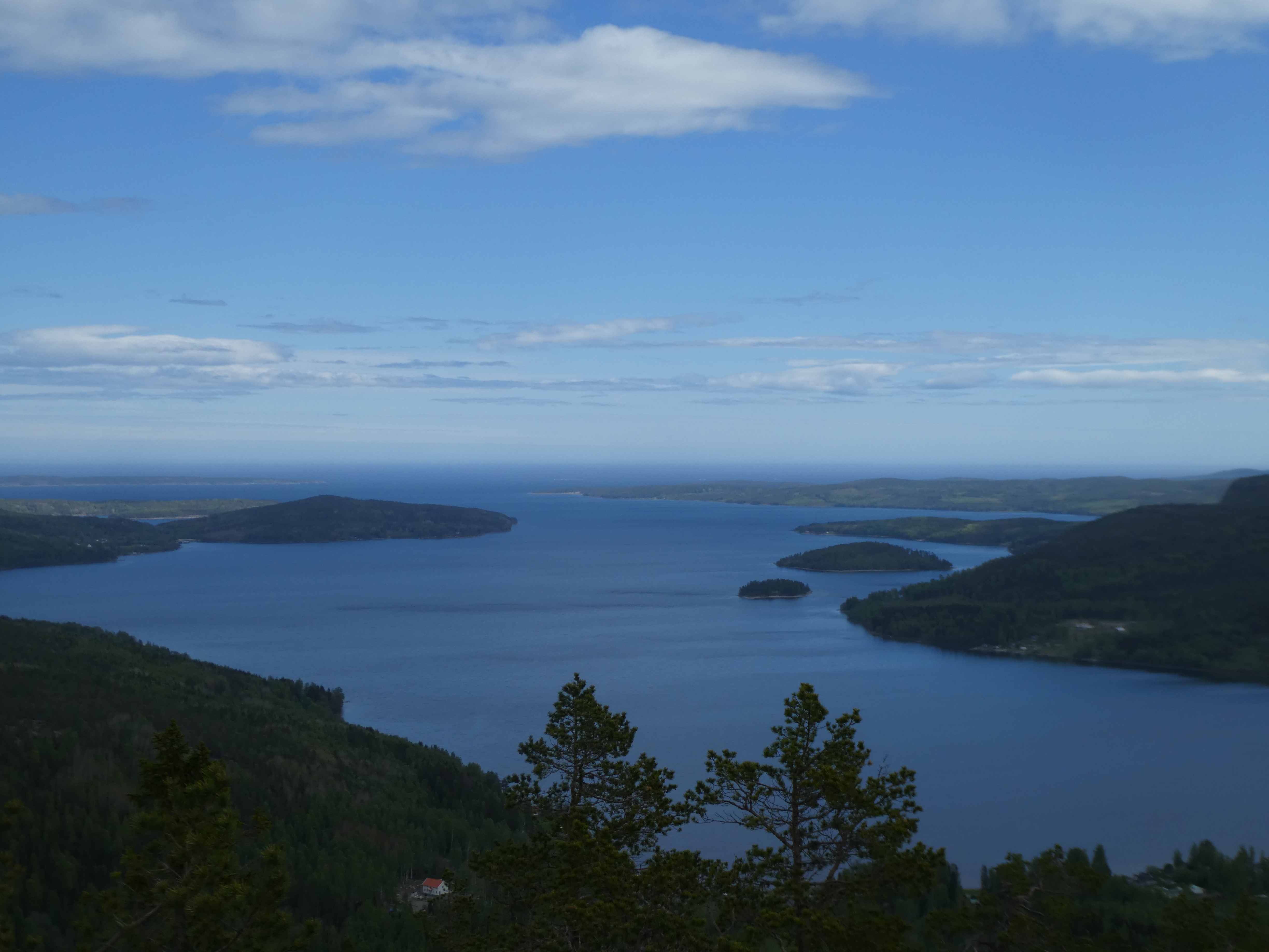 We stopped at the view point beyond the bridge. We clambered up to the several view points. These points allow a view looking east across to the Islands and hills. There were interpretation boards informing us about the High Coast.