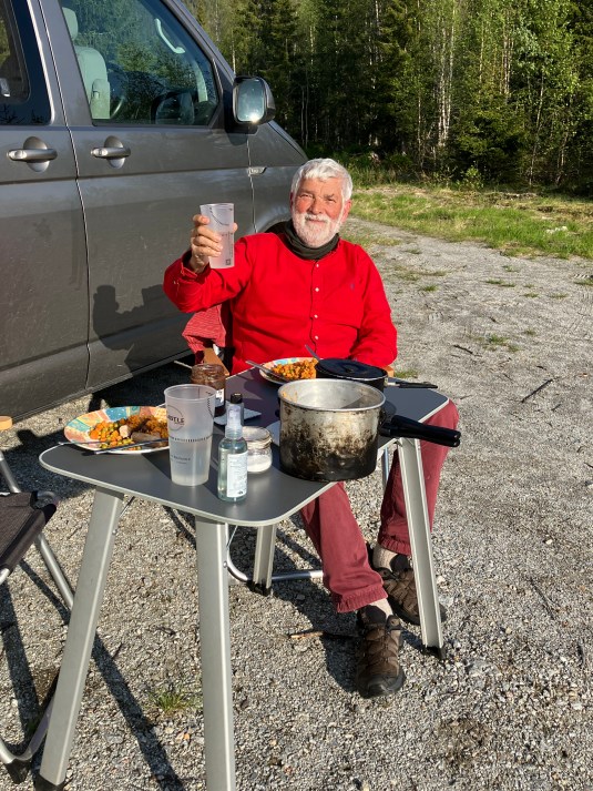 Martin arrived later having spent the day working in Finland. With lots of talk we shared a meal before bedding down in the guest room in the outside annex.