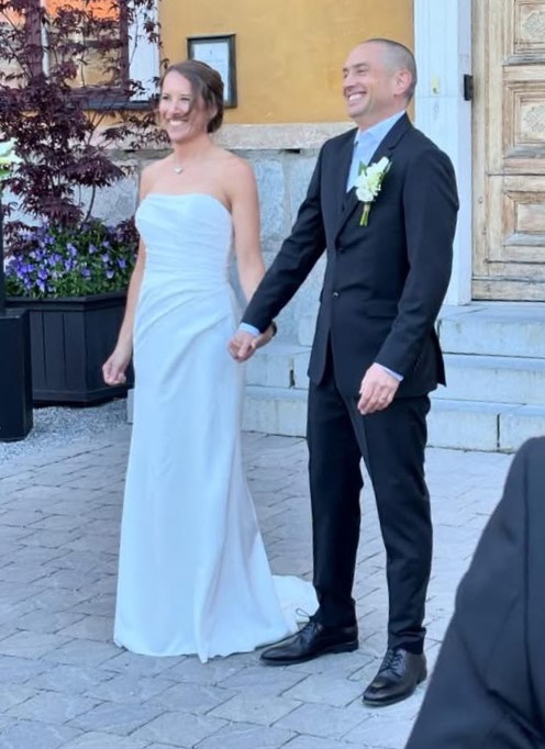 We all sat on wooden benches facing the castle with Marie, Emil, (Anna’s sister and nephew) James (the Master of Ceremonies) and the celebrant Peter, awaiting the couple.