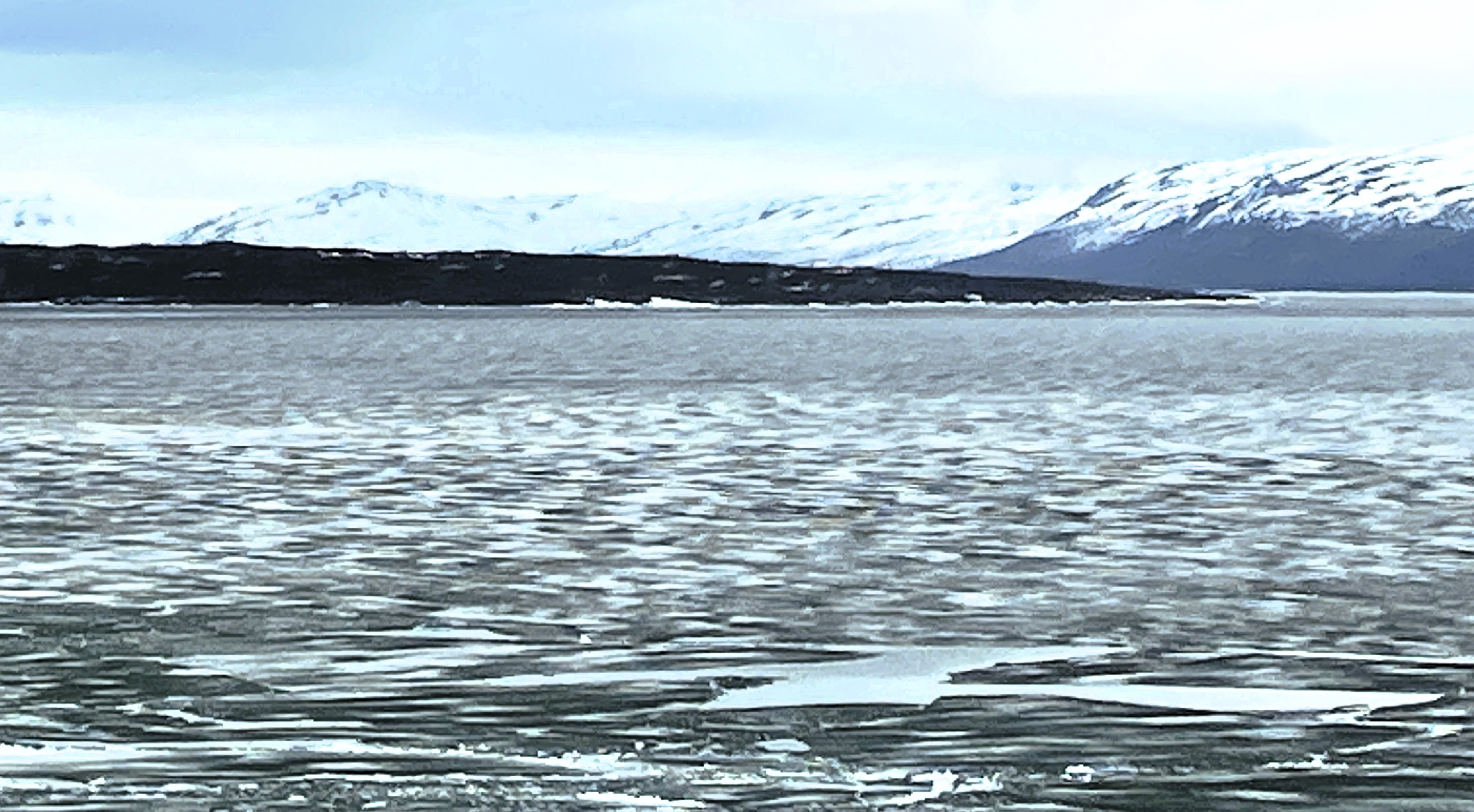 As we travelled on, we caught a glimpse of the Stavanger glacier high above us.