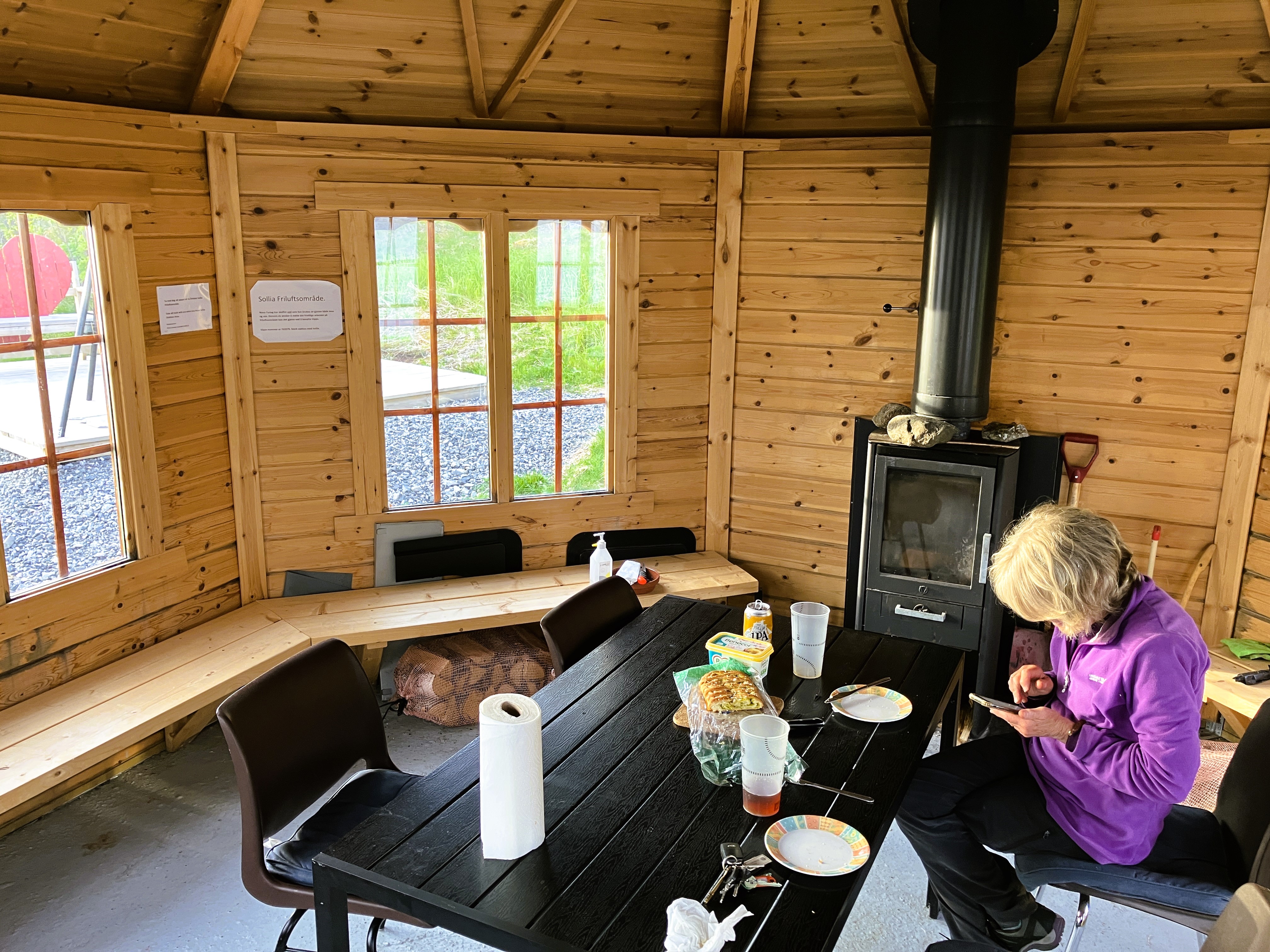 In the meantime, Martin had sorted out and ordered a new SAT Nav card for us. He had been to Vasteras collected ash for work and bought some lovely salads. We had for lunch in a, nearly too hot, garden.