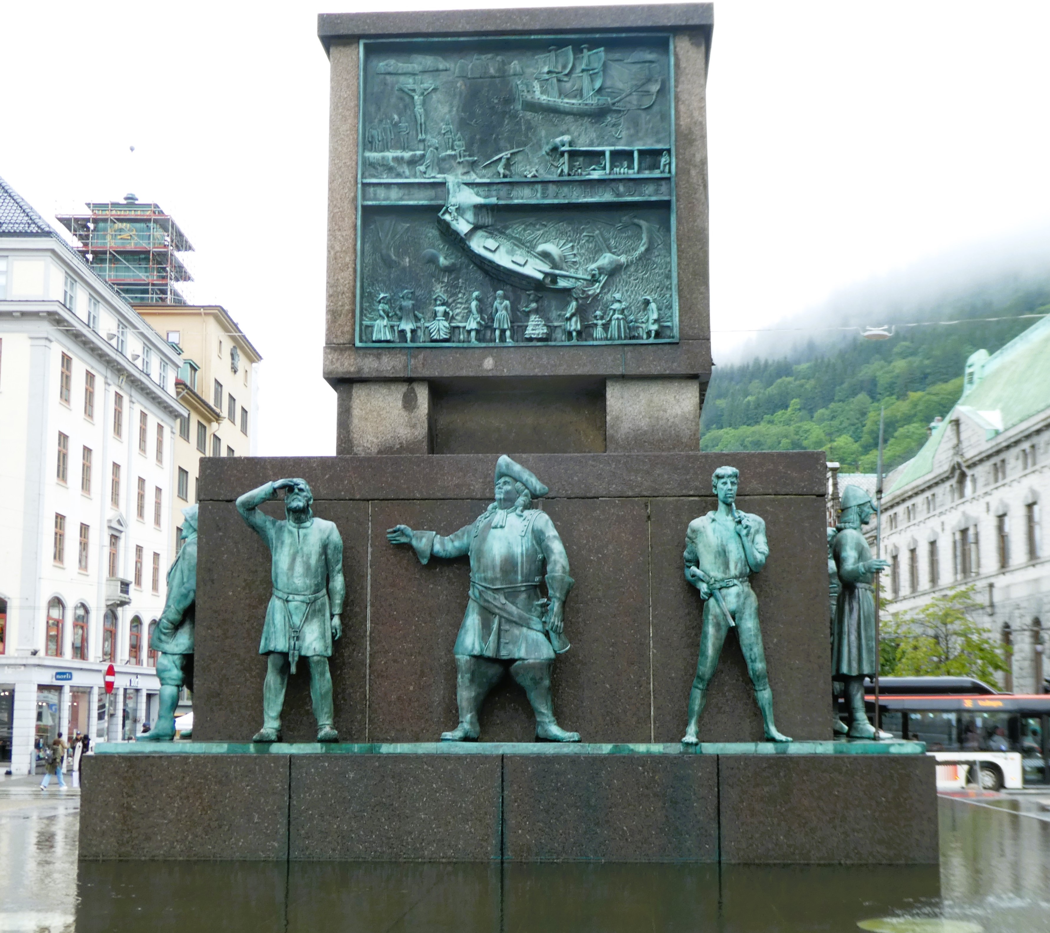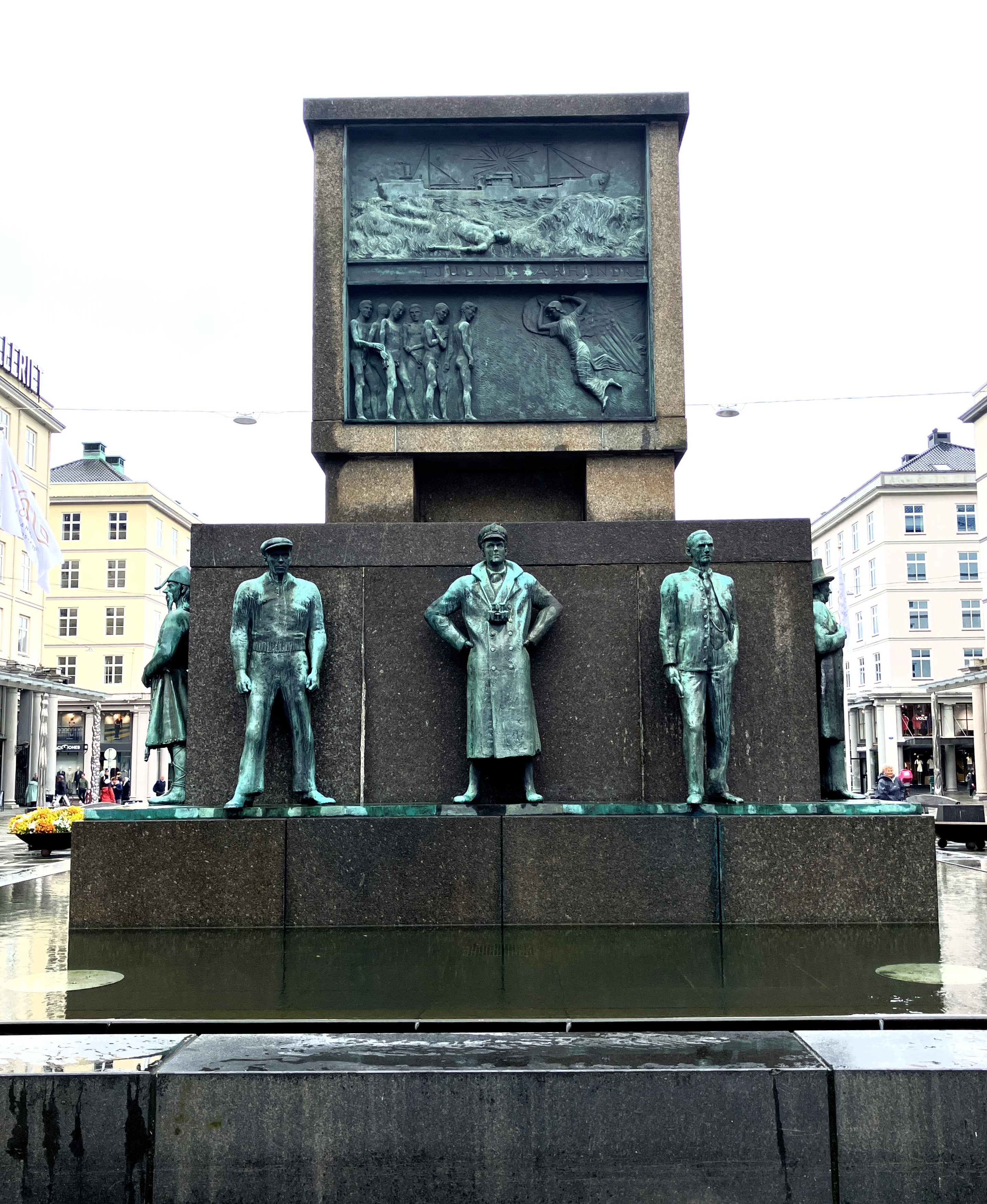 First we examined a four-sided monument, with a range of scenes made in bronze of the social history of Bergen.