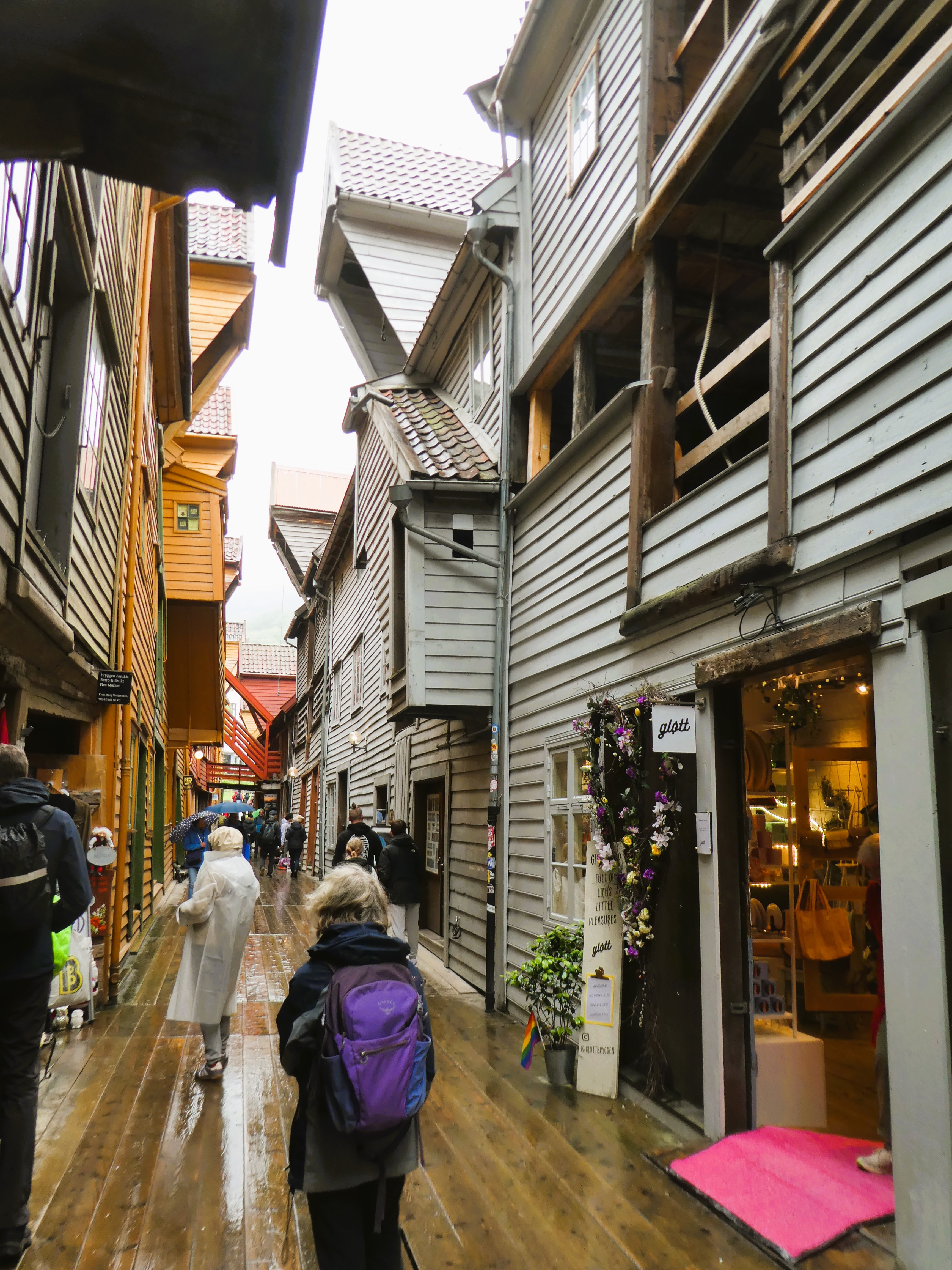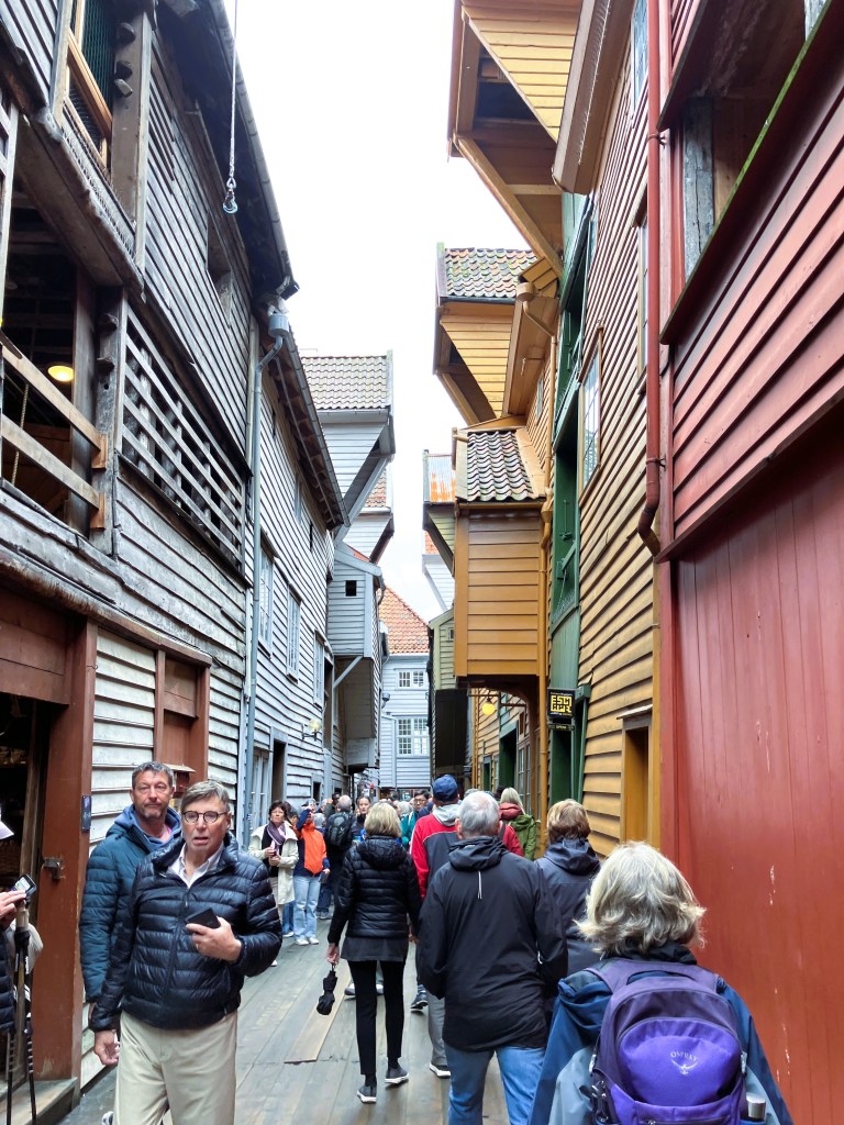 We have a break at the fish market to go into the dry. Part of the wet fish market is now there. The rest is amongst the popular tourist fish market restaurants on the quayside by the Bryggen.