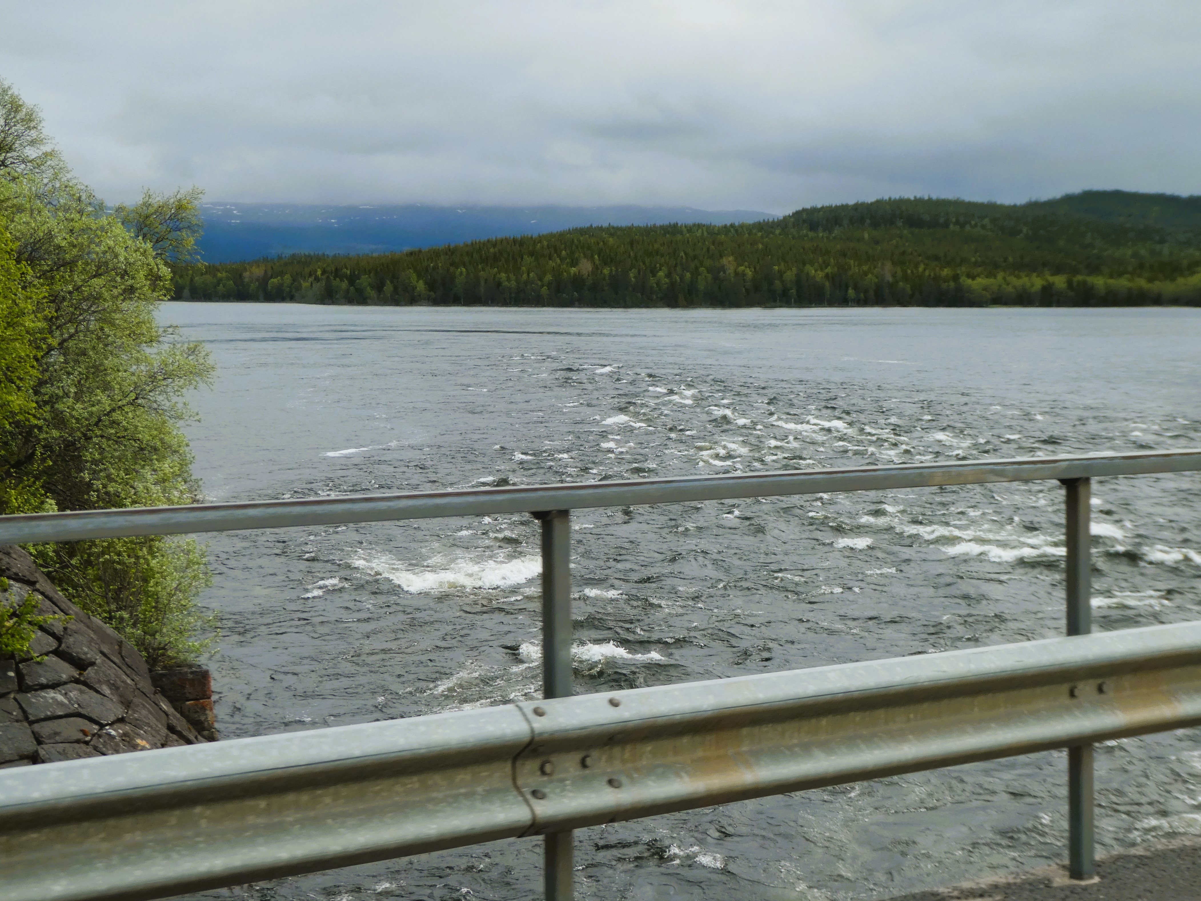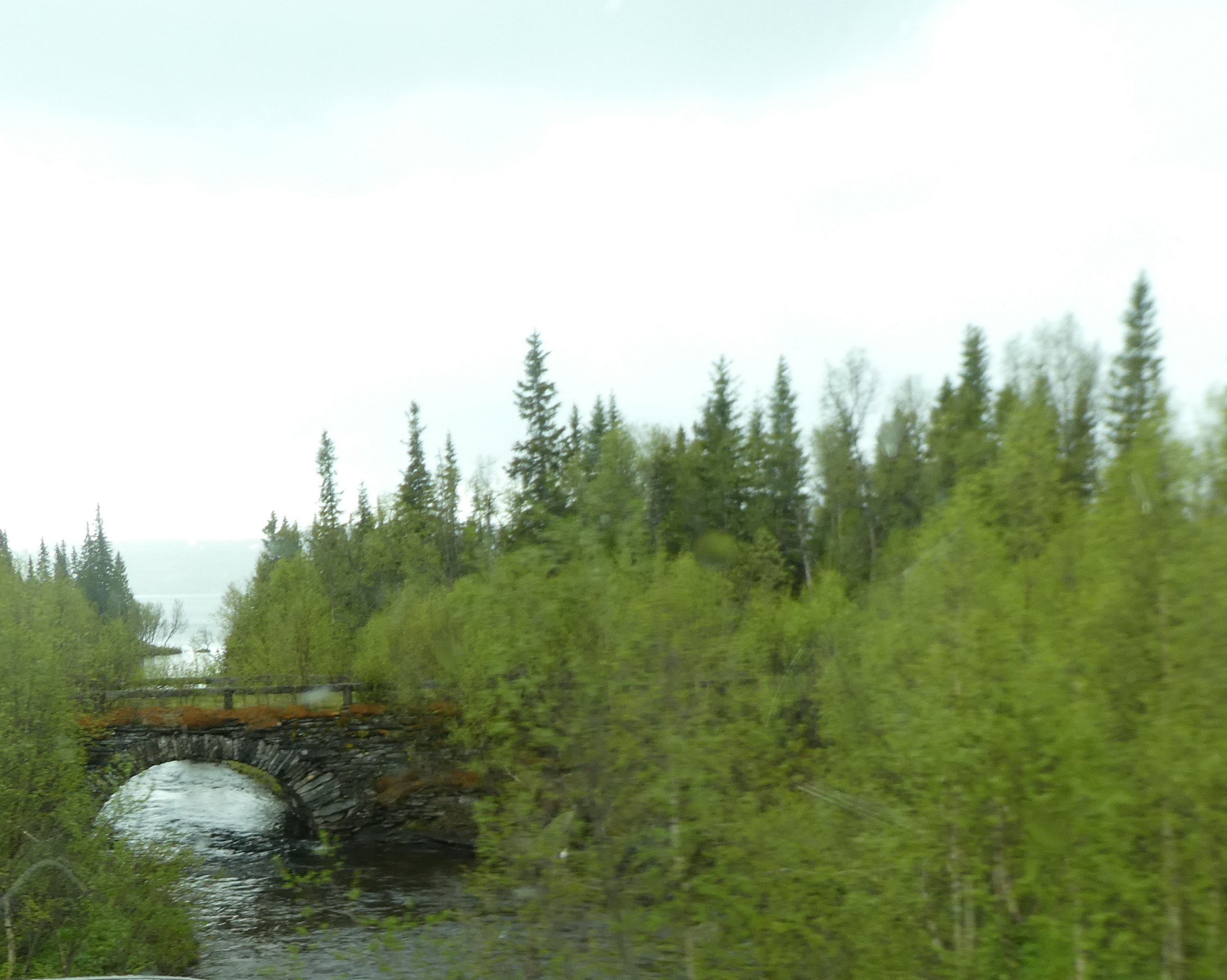 In rain we left Martin’s and shopped at Bromma ICA. We then headed north out of Stockholm. We went past Arlanda Airport to Uppsala, Sodderhamn and then across the amazing Hogakustenbron Bridge to the High Coast.