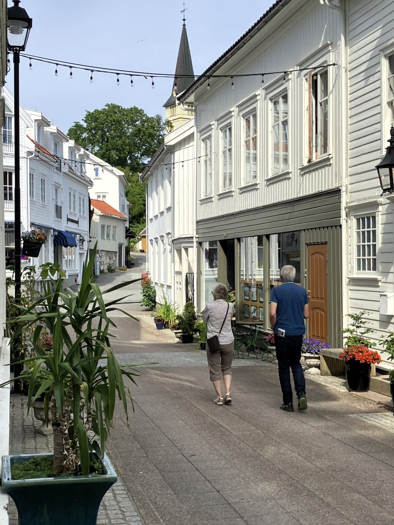 We walked back through the touristy town centre with its smart shops and eateries. It reminded us of English resorts like Salcombe and St Mawes. Then we drove on to the ferry port at Kristiansand.