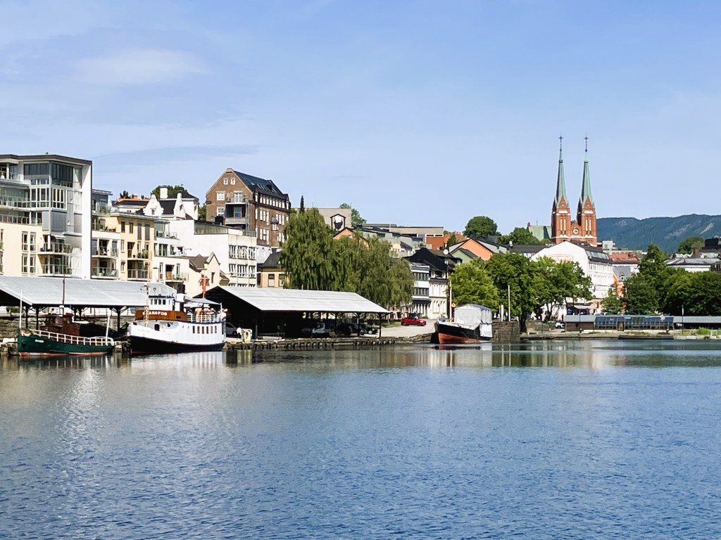 We took a back road to the town of Skien. We parked and had coffee in a retail centre. The sun was shining brightly and it was getting hot.