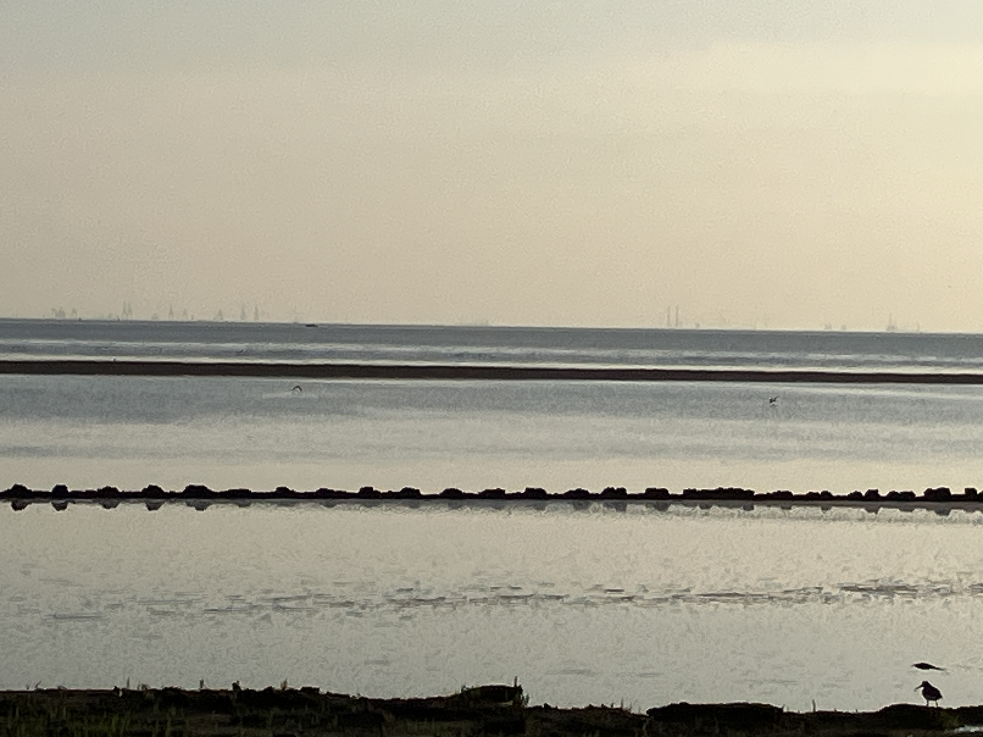 Amongst the tall reed beds was an enormous bird hide. It towered high above the muddy waters. A raised walkway provided access to it. It was lovely walking out there. We spent time identifying shellduck, godwit, black headed and black backed gulls. We also spotted tern, curlew, martins, swallows, red shank, avocet, oyster catcher, dunlin, stint, and plover.