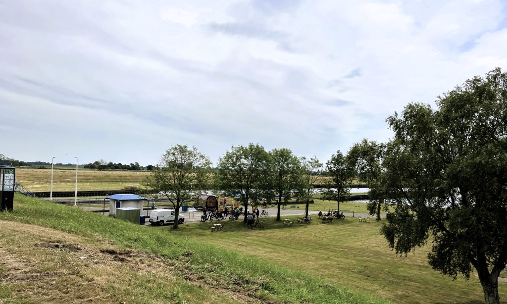 There were very few cars there but lots of cyclists and an enormous lock gate. This was on the border between Germany and the Netherlands. Information about the interesting birds and the sluice gate structures were described in both German and Dutch.