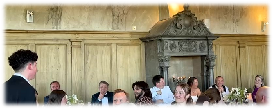 The Wedding Banquet began and under James’s direction speeches were made. Anna’s father Yarn, her sister Marie, Graham, Finn, Olly, the best men, Peter and Chris, Agnetta and Halvard. All were good, but Finn’s really stood out. The emphasis being on the love of Martin and Anna