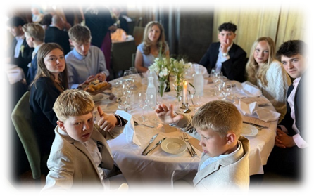 Photos were taken and we all went into a small marquee out of the bitter wind. At until six o clock when we went upstairs to the top floor and the banqueting suite. Here people found their tables, partners on the same tables but not together, fully mixed with friends and families.