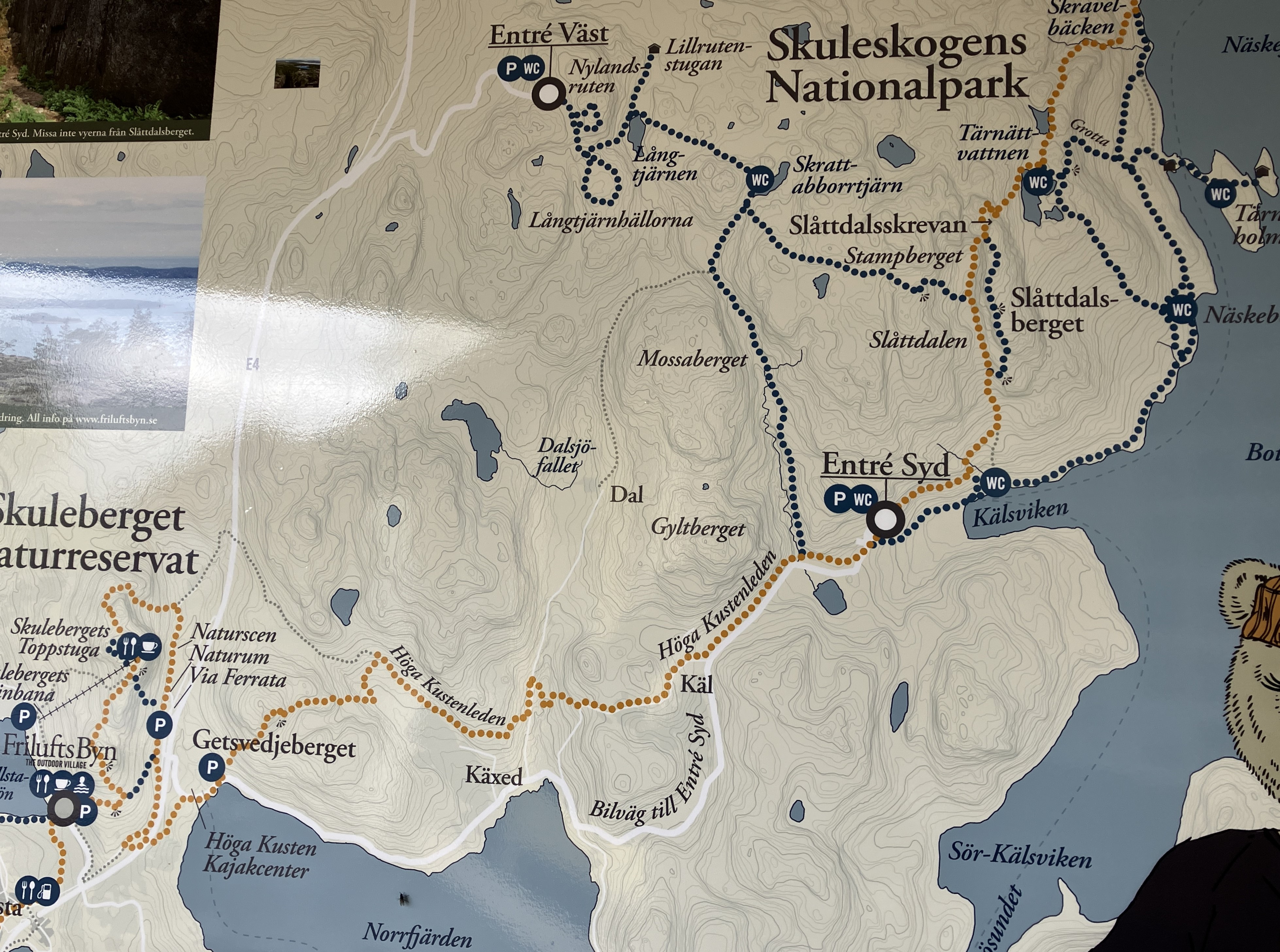 We stopped at the view point beyond the bridge. We clambered up to the several view points. These points allow a view looking east across to the Islands and hills. There were interpretation boards informing us about the High Coast.