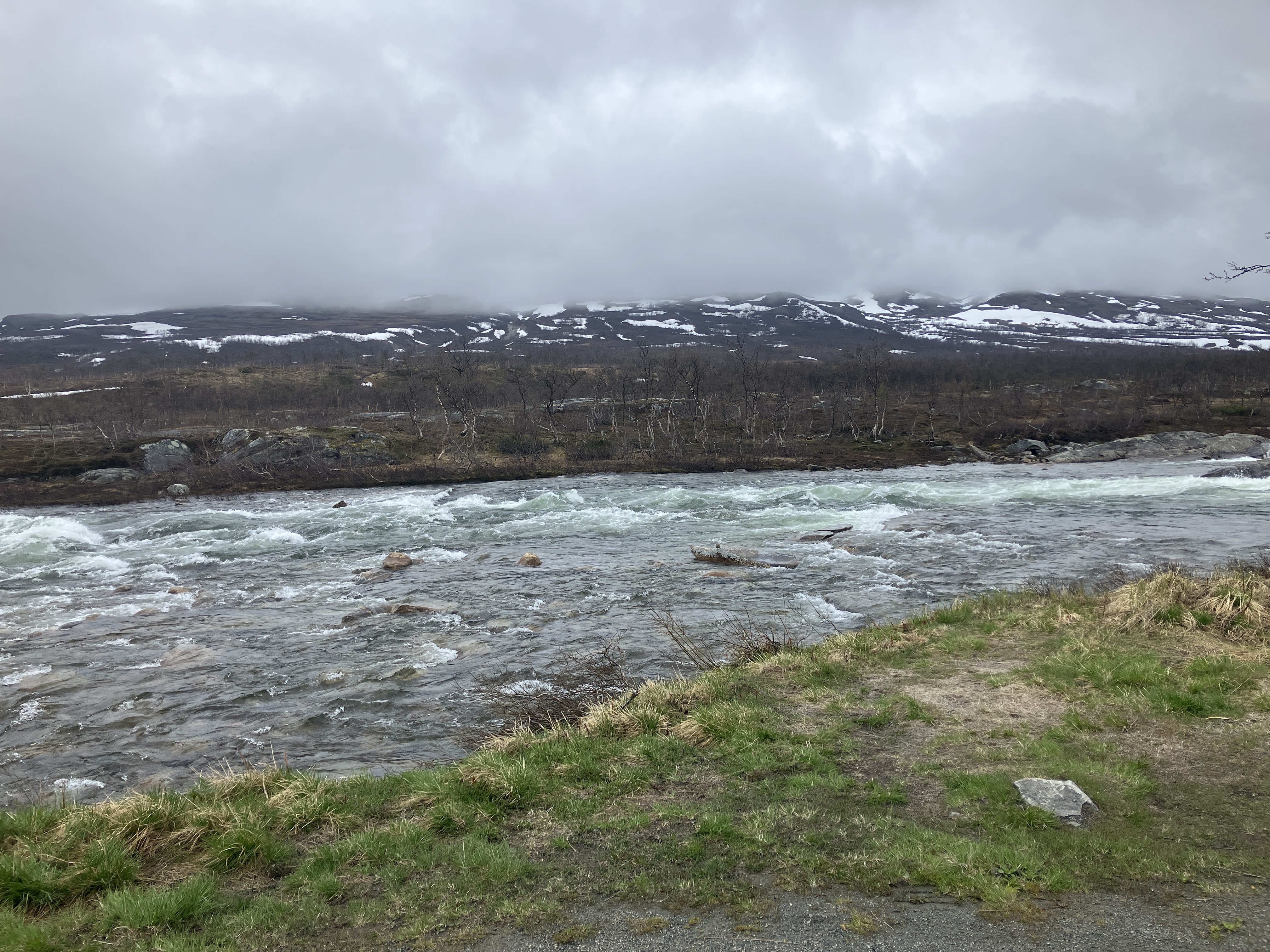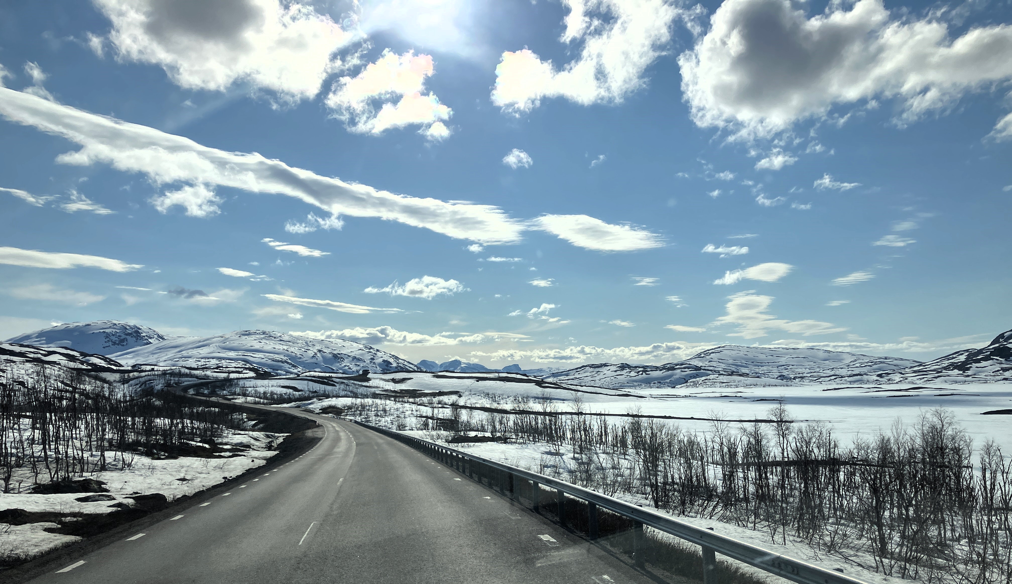 There were amazing waterfalls, and lots of lakes set amongst barren snowy mountain tops. The clouds were low and rain never far away as we stopped for Fika in Odda. As we had found before the recommended café was shut but we found a very acceptable alternative.
