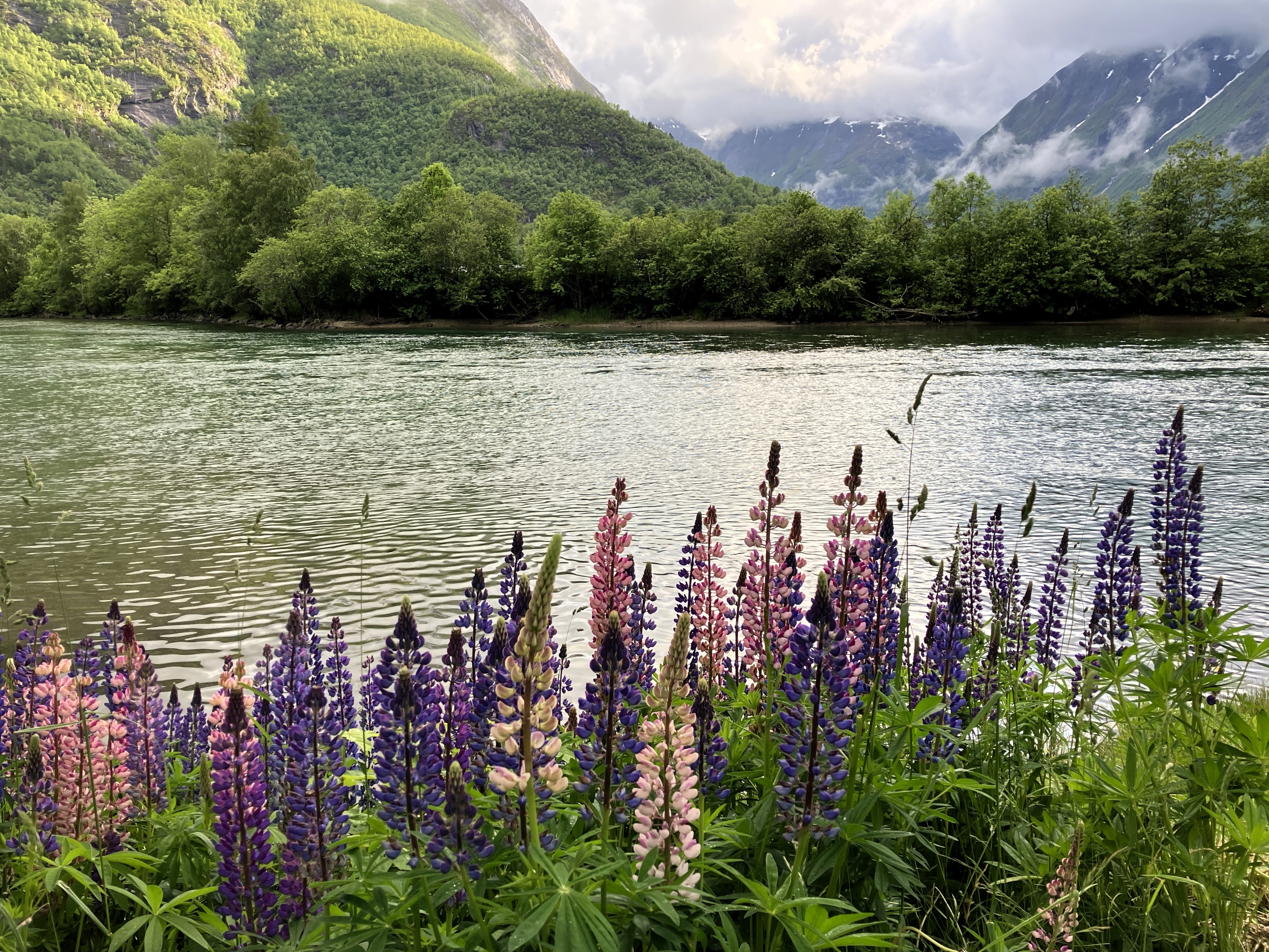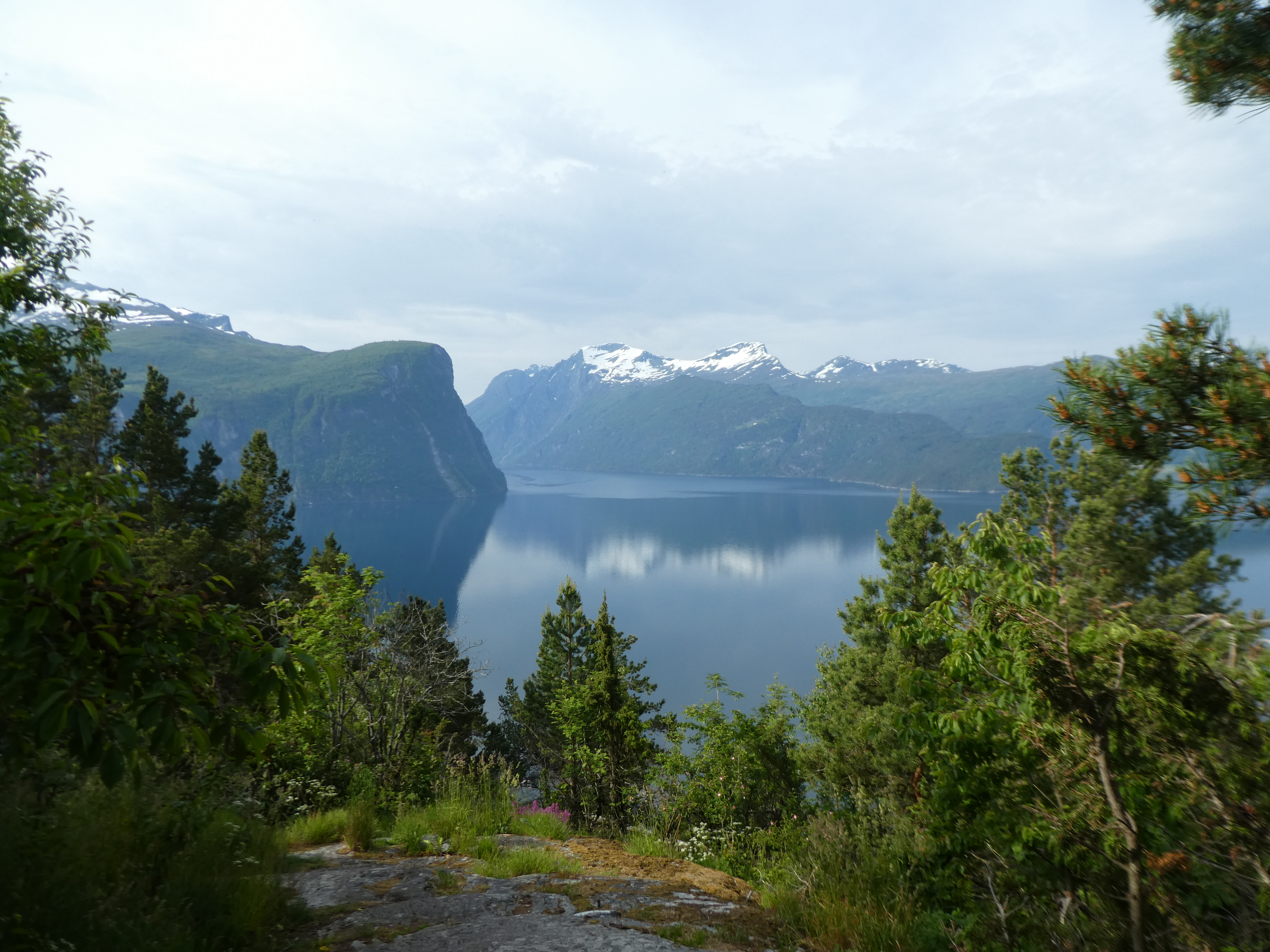 Once past Amot the scenery became less dramatic but still beautiful. We were travelling inland away from the major Fjord area and the weather was improving.