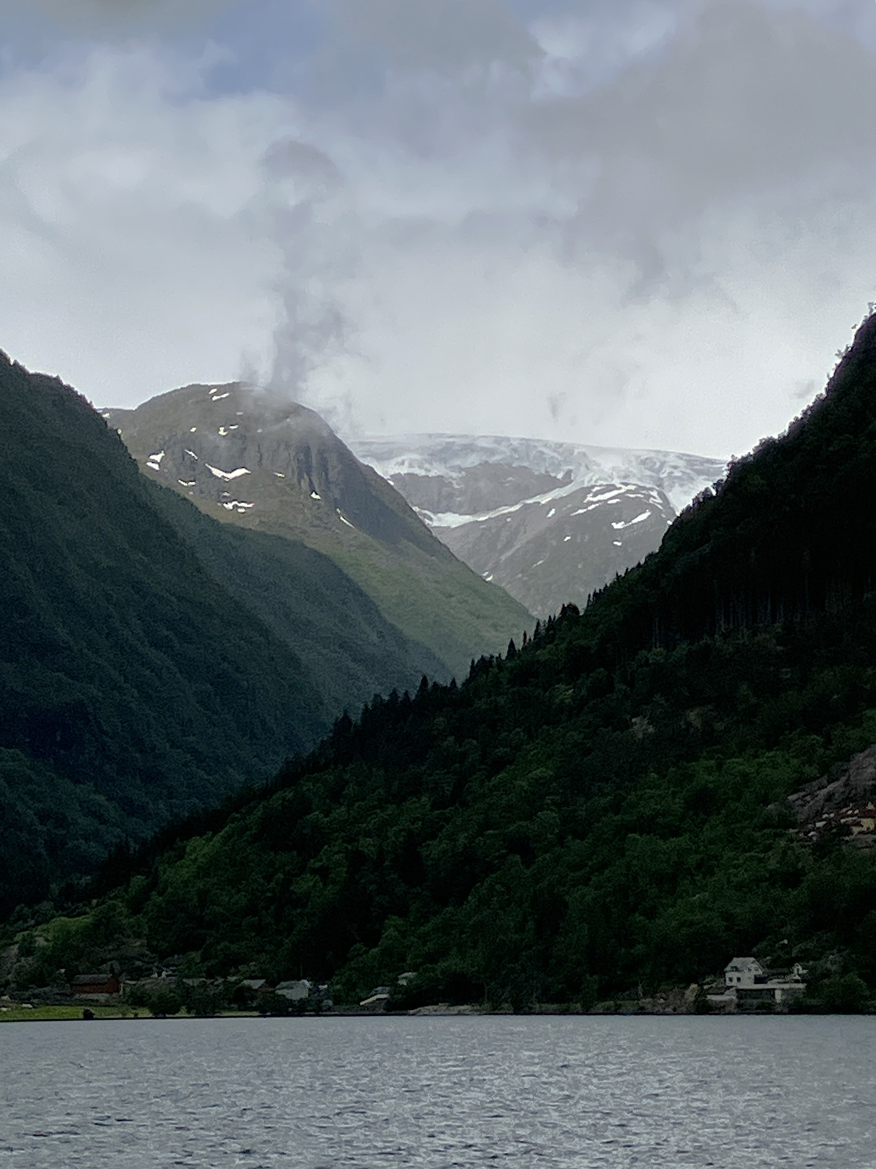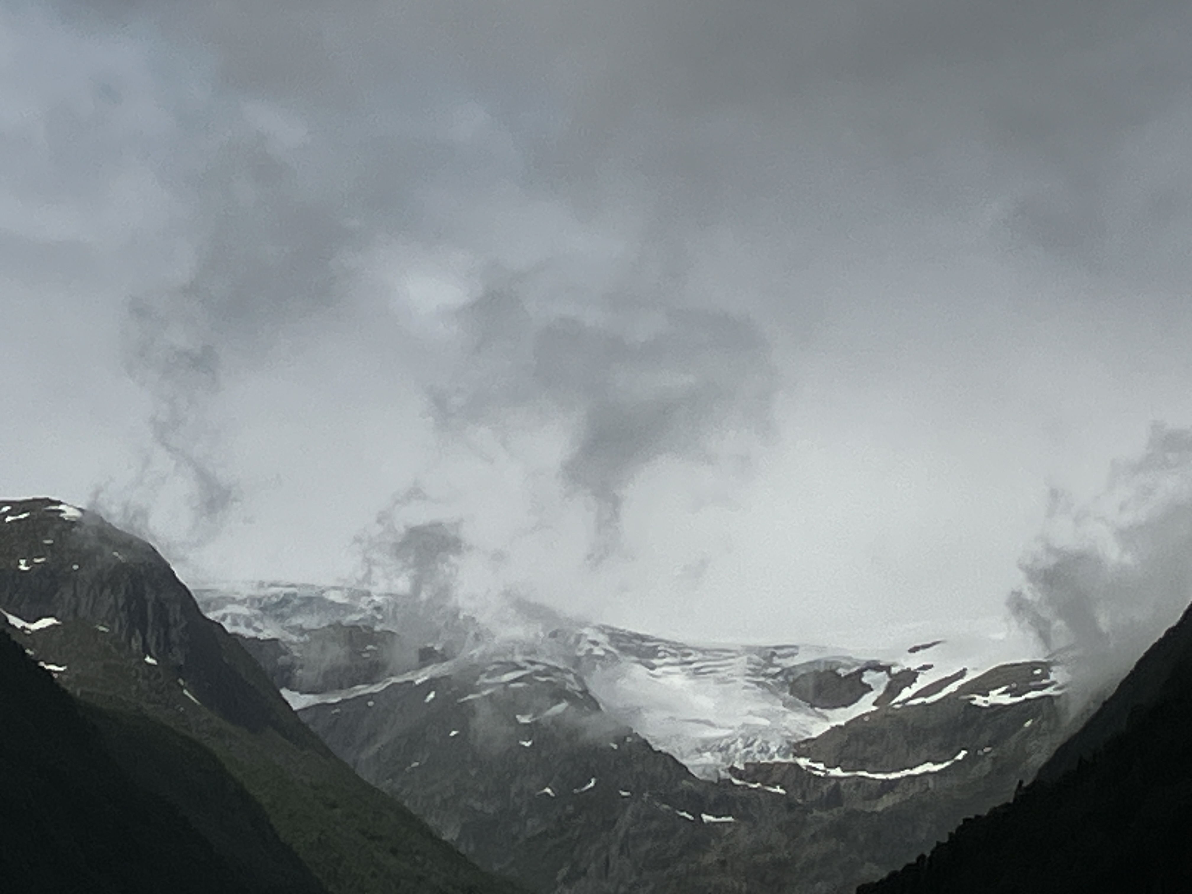 As we travelled on, we caught a glimpse of the Stavanger glacier high above us.