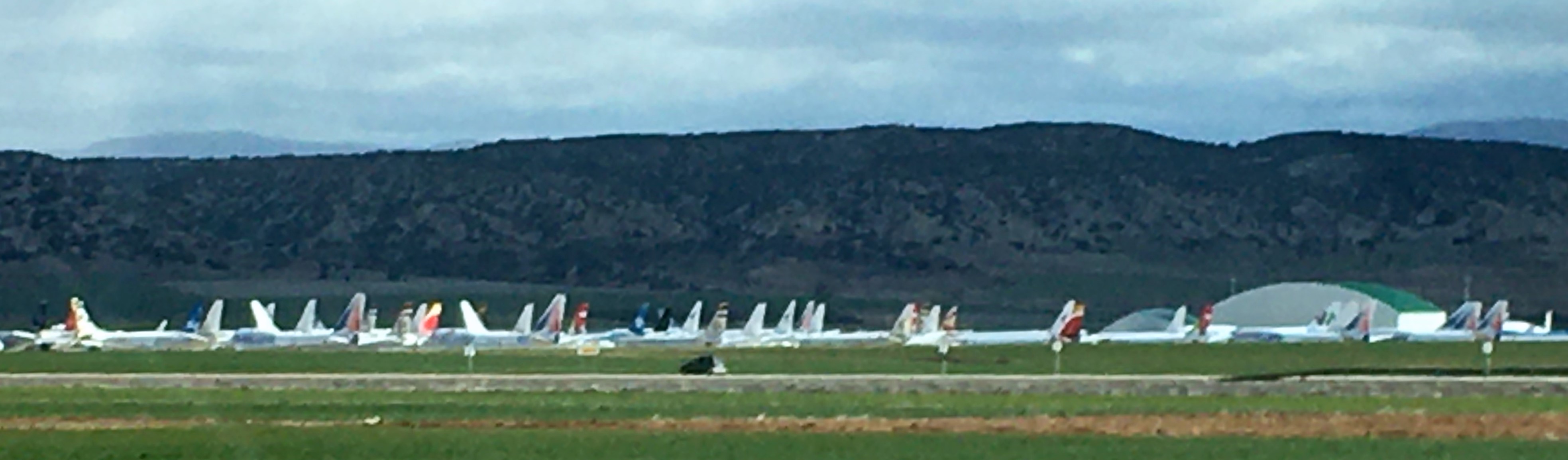 Back at the camp site we quickly packed up and around 11am and headed to Teruel passing a parking lot for aeroplanes !