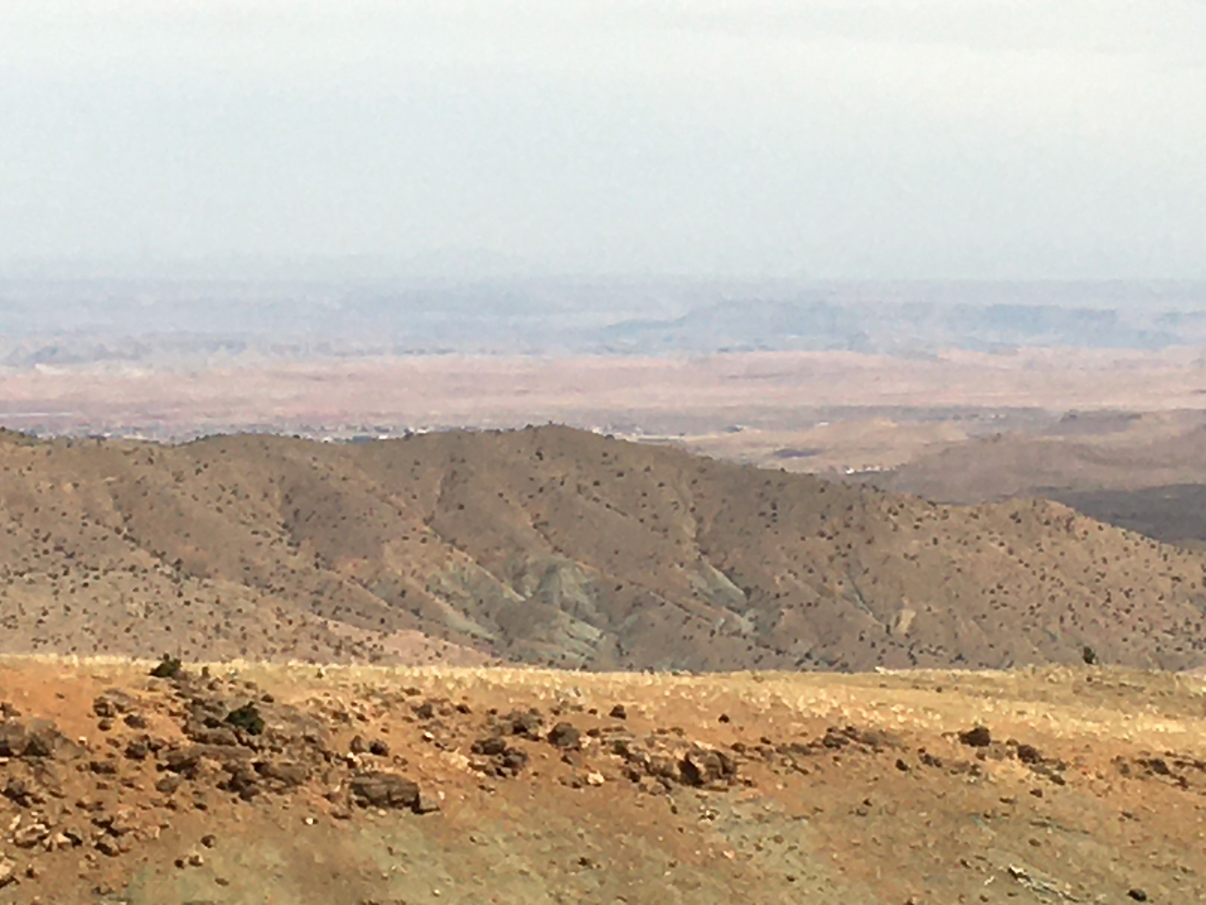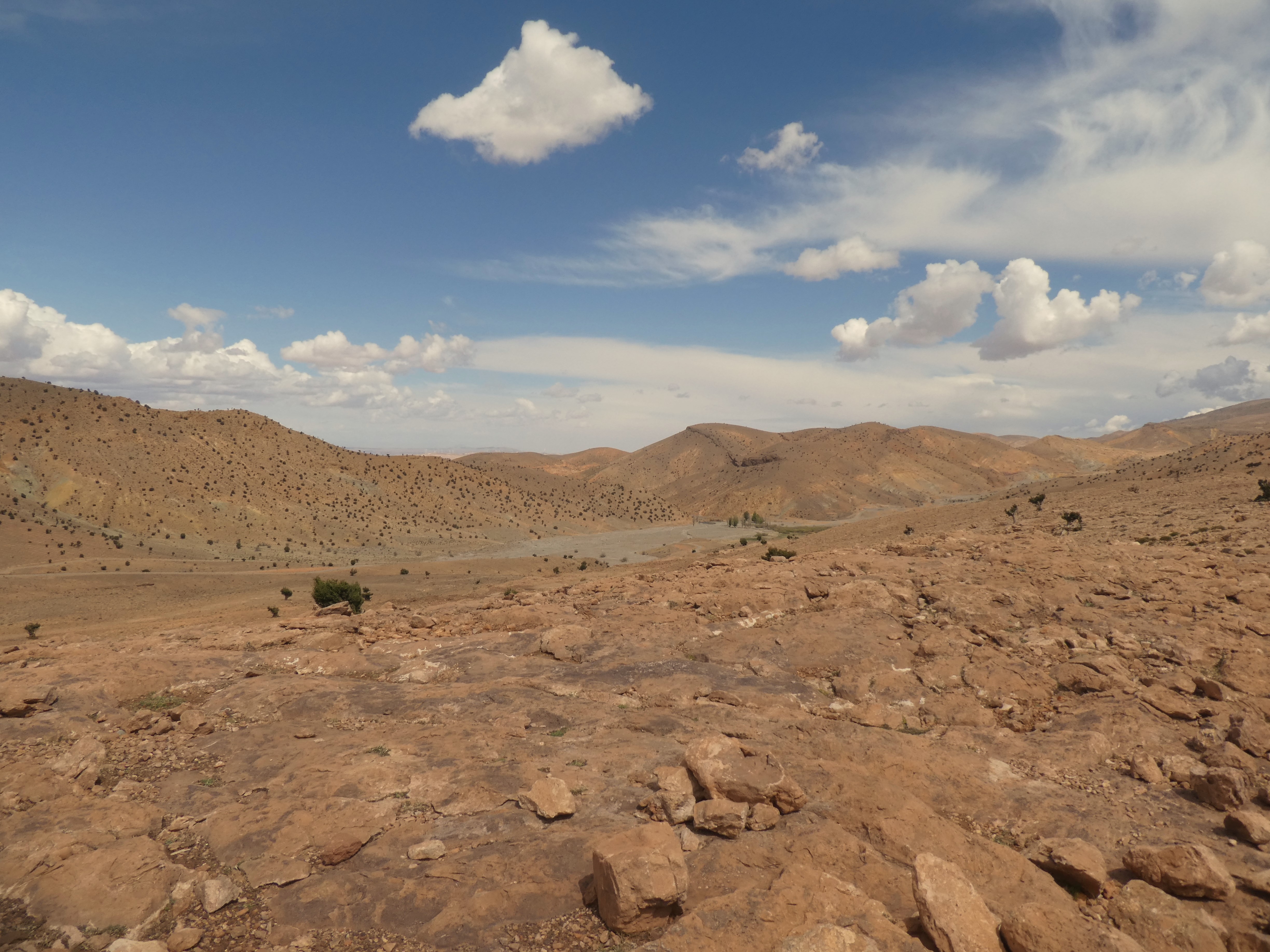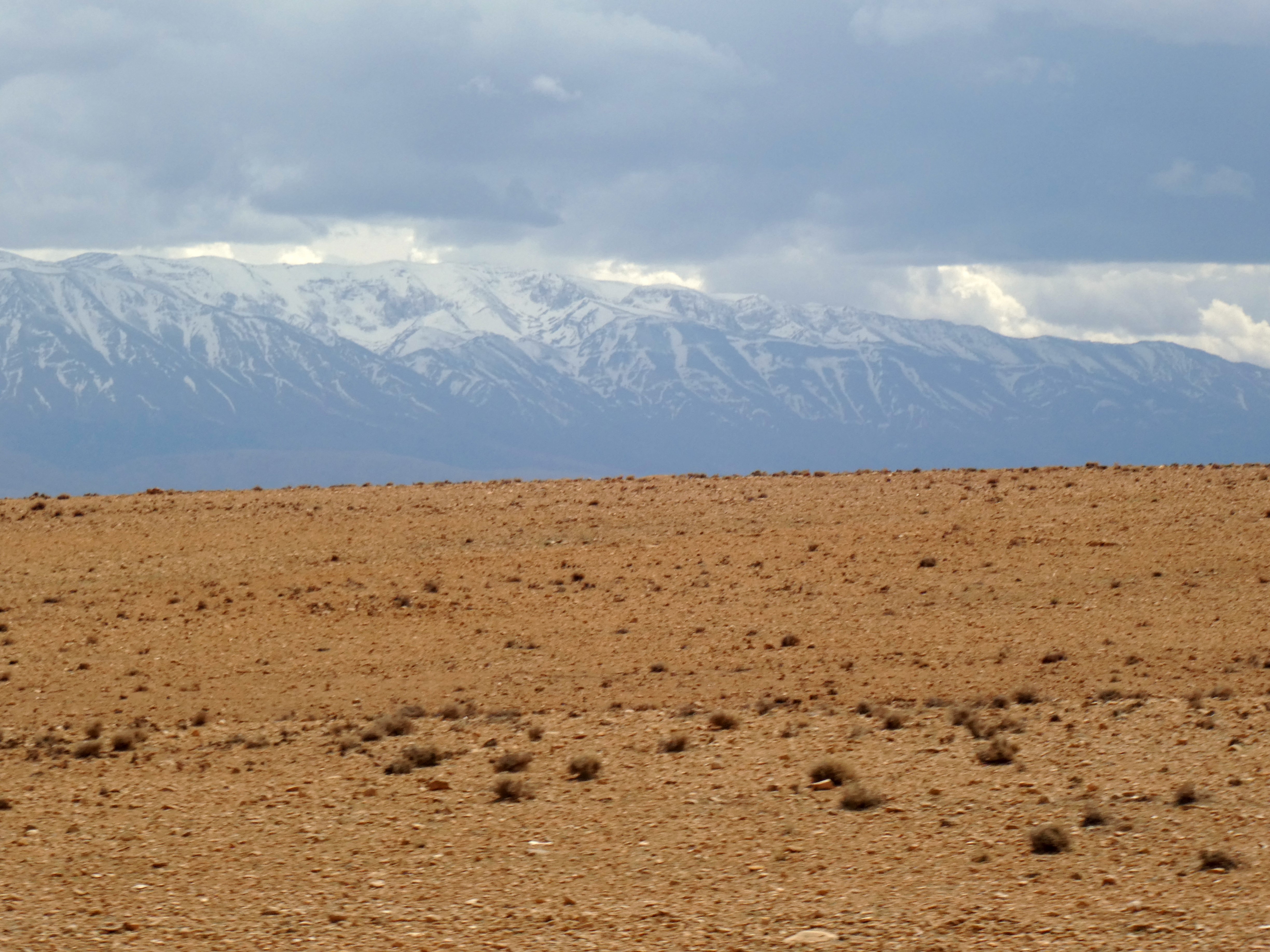 South again we passed through the Middle Atlas and down onto the yellow desert plain to the mountains and to Midelt which had the feeling of a frontier town. The landscape was huge the High Atlas like a mountain wall ahead of us. We were reminded of the Patagonian area of Argentina.