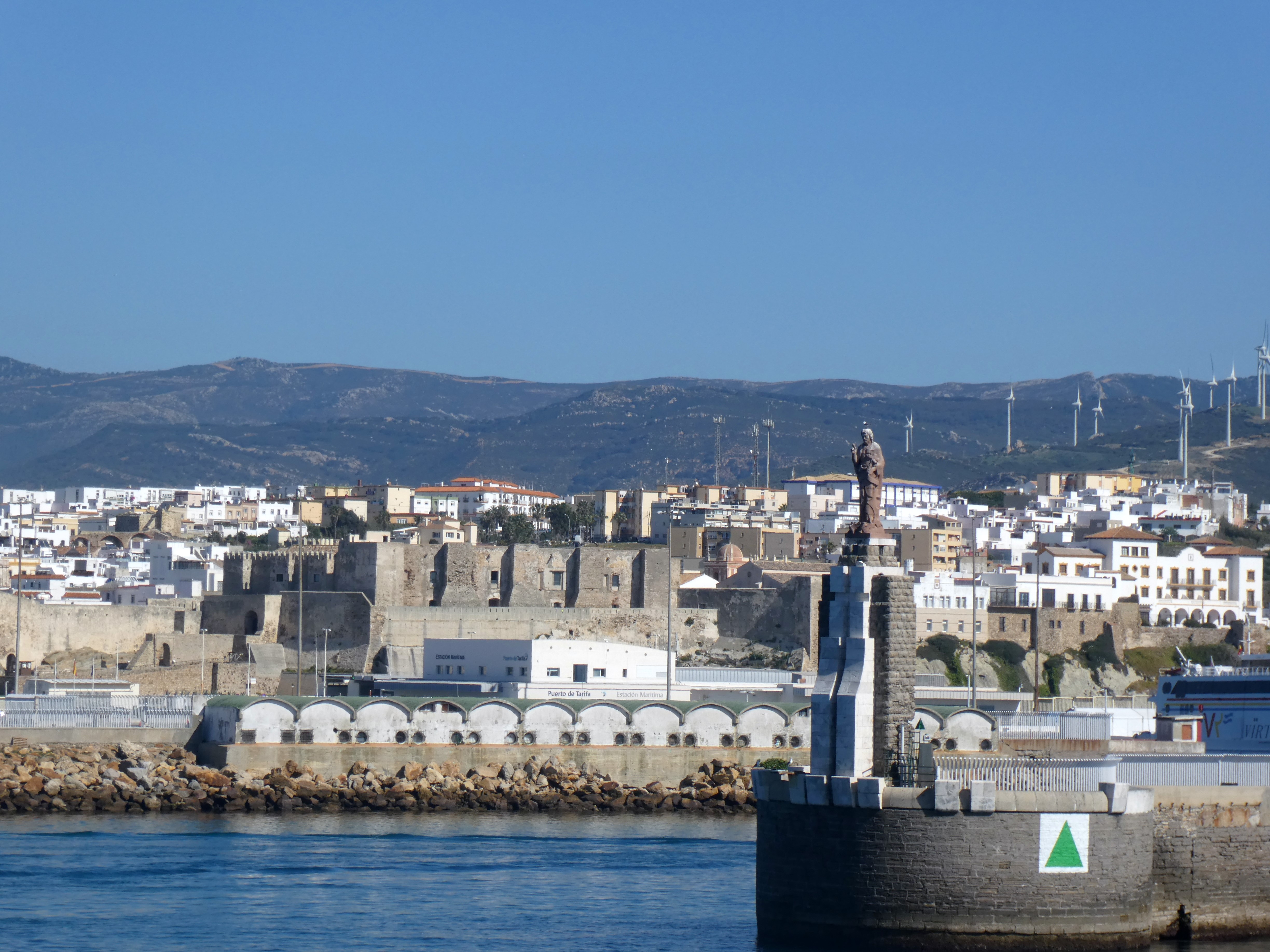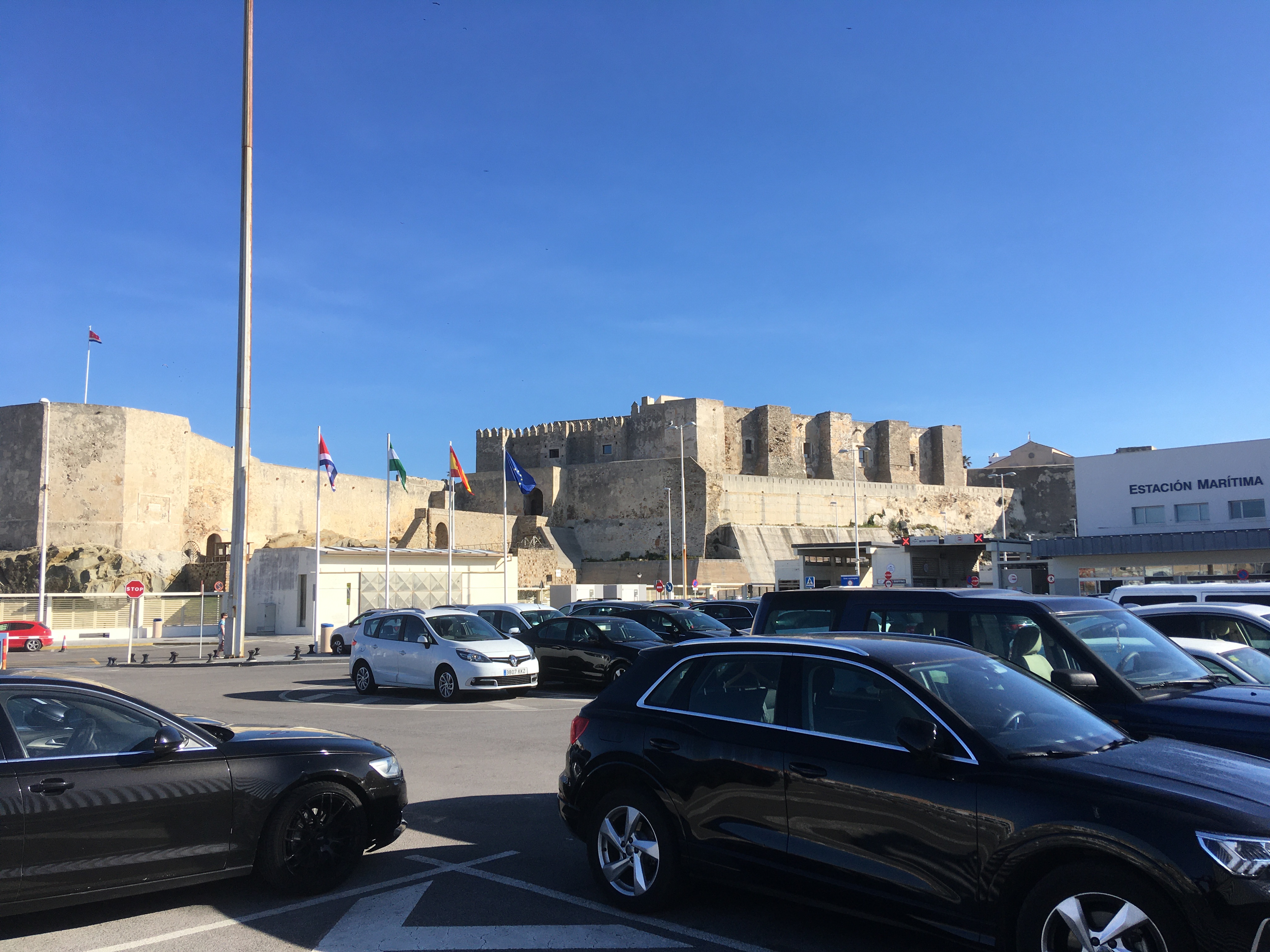 With the help of Google Translate again, we agreed to leave the bikes at the back of some buildings rather than take them to Morocco. We left the camp site in warm sunshine and went to Tarifa Port an hour and a half early as required.