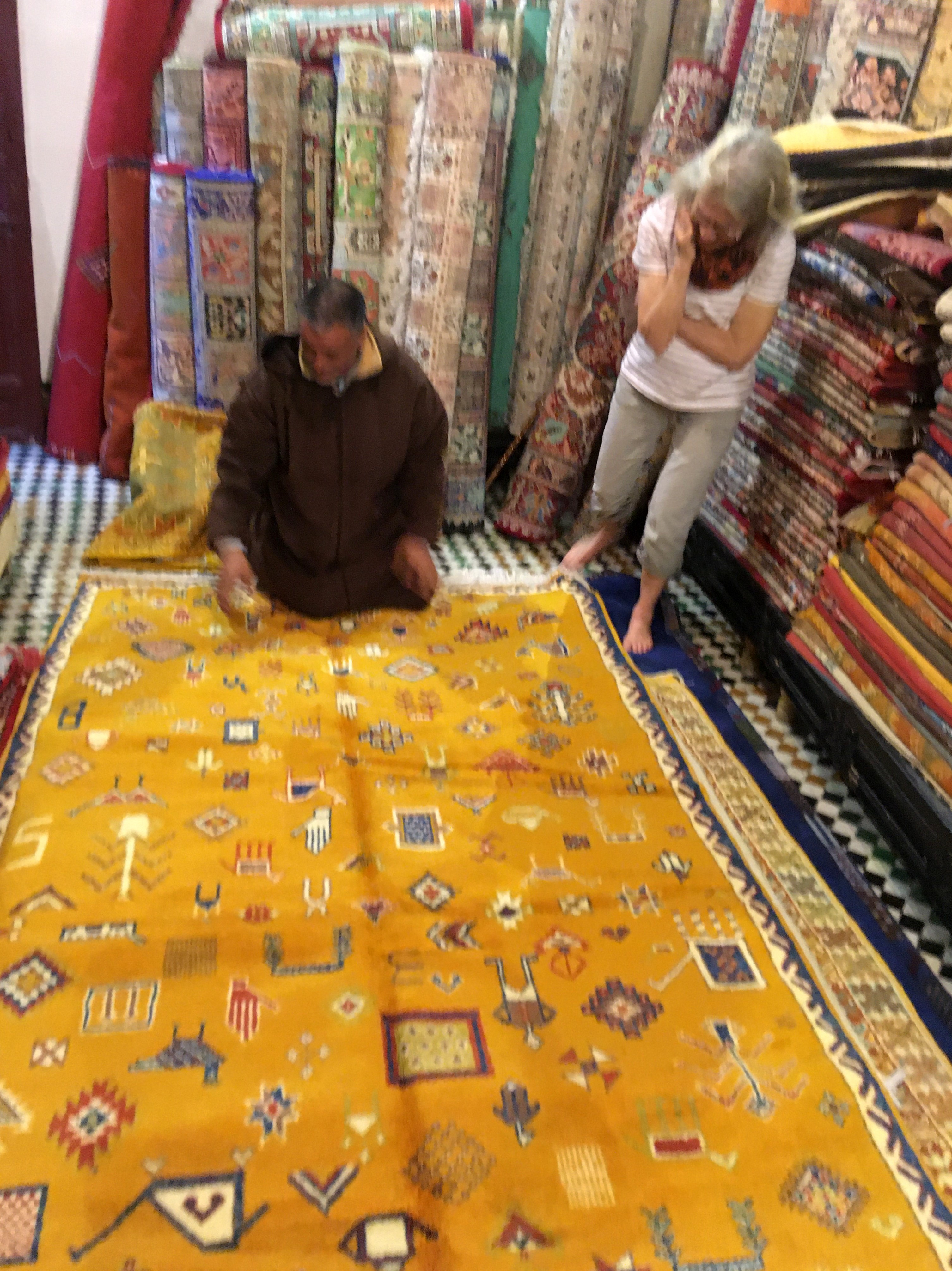 We then met up with the shop keeper who had given us directions on Wednesday afternoon. Grateful for his help then we were persuaded to buy a small Berber camel hair rug from. It will be a good replacement for the rubber mat left behind at El Cantonet.