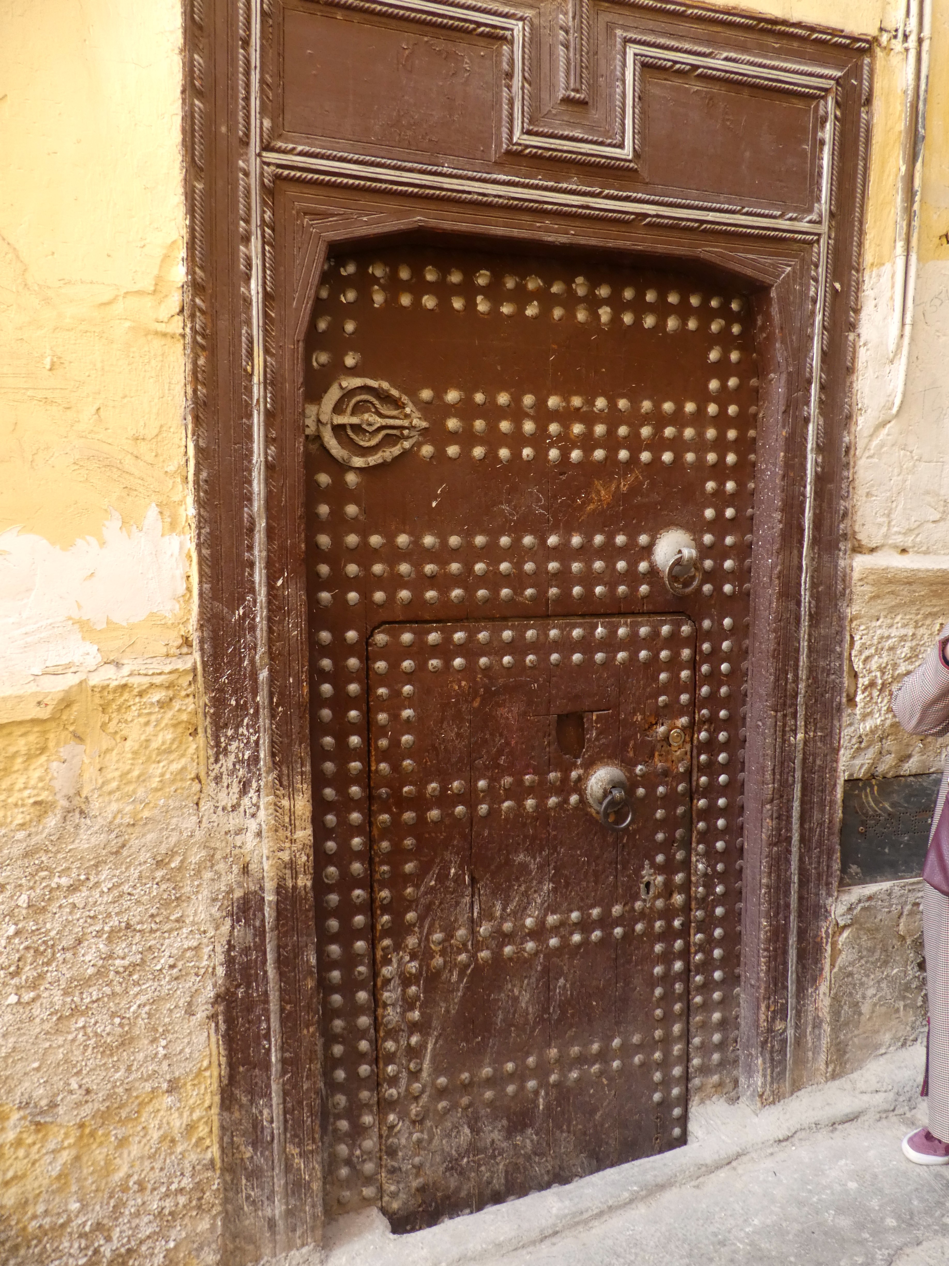 We then walked down into the local’s food market where all the women were buying their fresh daily produce for the day. She encouraged us to look at the ordinary doors. Many were a small door within a large door with different knockers.