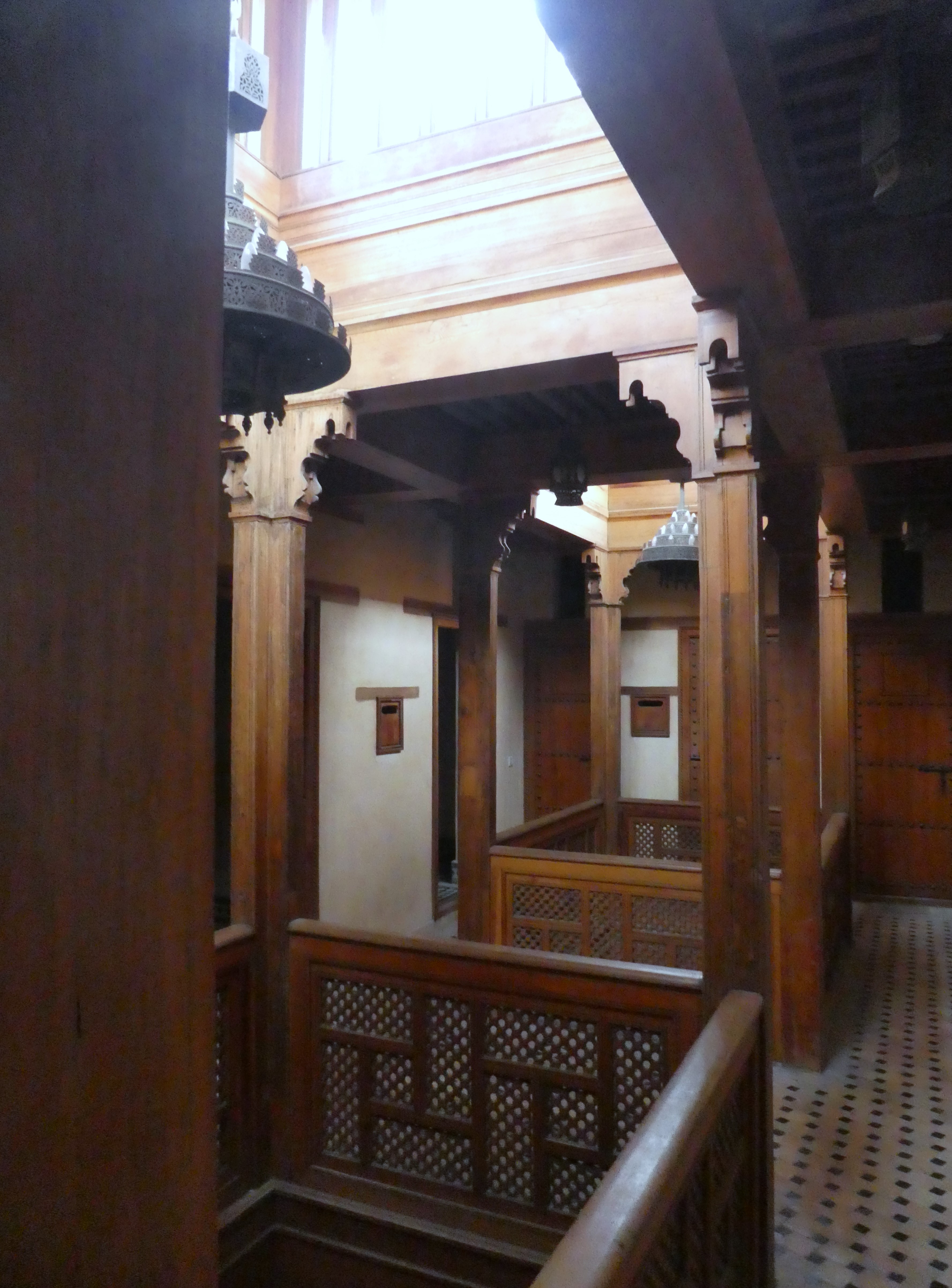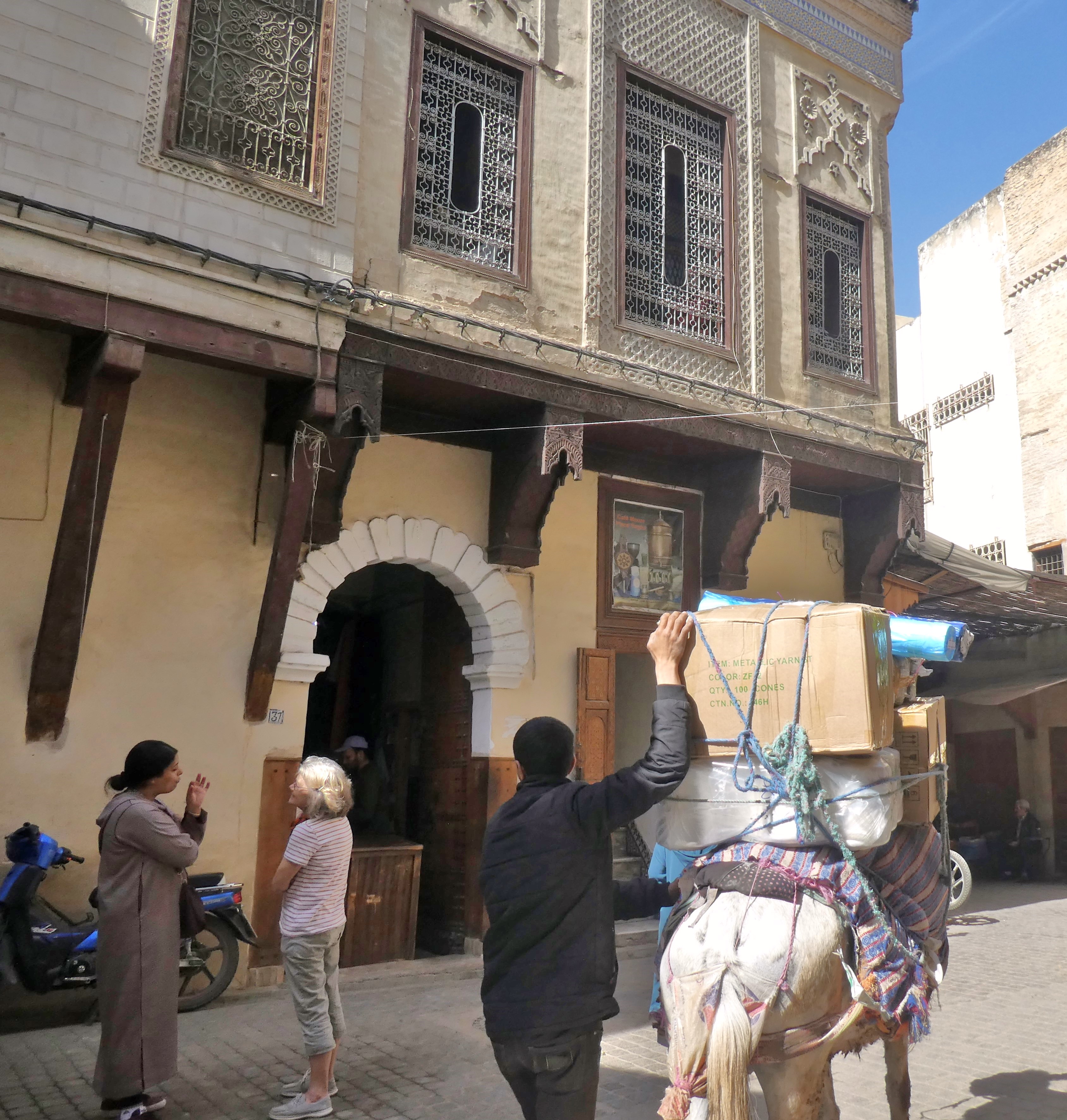 As we wandered on we got into a conversation with a herb/spice seller. He gave us a lovely explanation/taste/smell of all the Moroccan herbs and spices and we came away with some Berber tea, saffron and a spice Raz al Haroun. He advised us to visit the Musée Nejjarine des Arts et Métiers du Bois nearby.