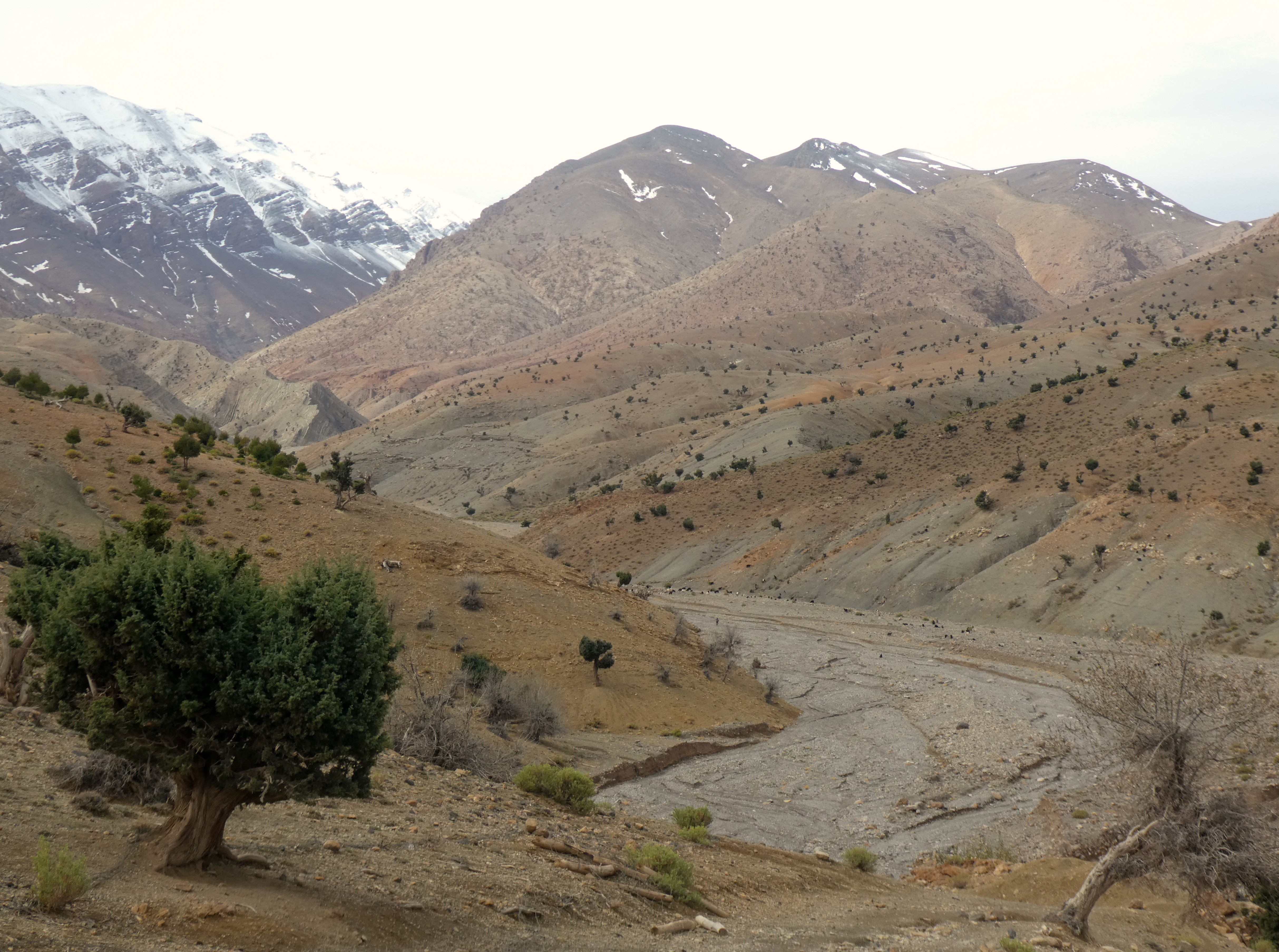 Crossing the main river valley it disappeared and we had several attempts at finding the right route through. The track leading up to the ridge diverged from the track leading to the famous Cirque de Joffar which led out of the valley and over the Col to the south.